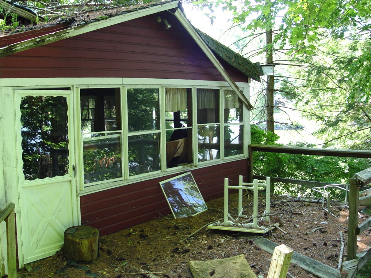 Seasonal residence, 1 story, Cottage style, built 1949 +/-, 720+/- sq. ft., 2BR/1BA, porch. View of Mountain Lake. Adjacent to Lot #26.