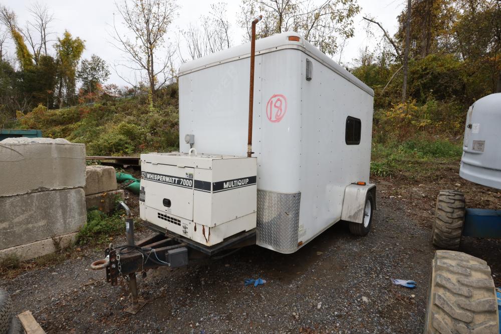 2011 Lark tow behind trailer with pintle hitch. VIN: 5RTBE1018CD026DD9. Equipped with whisper watt diesel powered 7000 watt AC generator model DA-7000SSA, Thor Mfg. Frost Buster model LD3015.