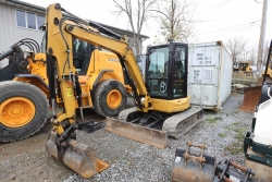 2018 Caterpillar 304E2 CR excavator with grading blade, digging bucket, hydraulic thumb, Heat, A/C, AM/FM/Bluetooth radio, hour meter reading 1843 at time of photography. PIN number CAT0304EPME405022. Runs and drives, see video. Grading bucket attached to machine in photos NOT INCLUDED. See lot 49 for second bucket not included in this lot. This lot has a reduced Buyer's Premium of 5%.