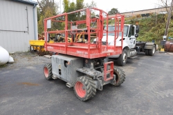 SkyJack lift model SJ6826RT 4X4, platform height 36' hour meter reading 2080 hours at time of photography, see video.