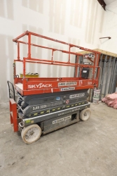 SkyJack lift model SJ 3226, platform height 26', 500lb capacity. Runs and drives, see video.