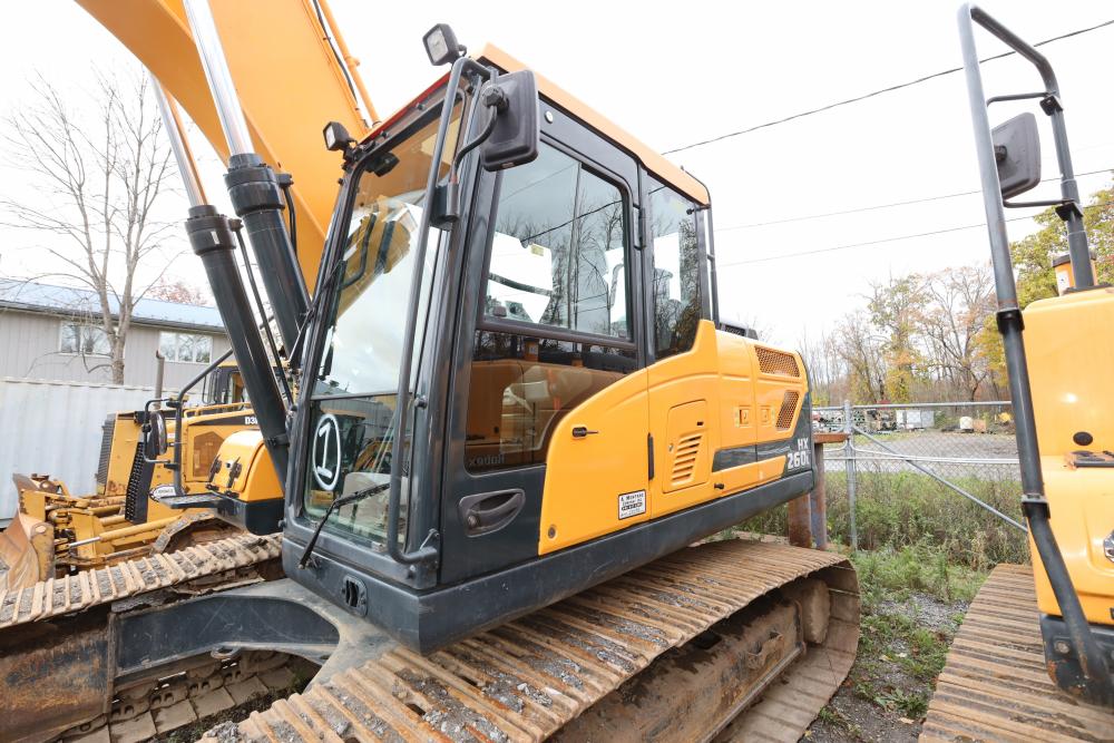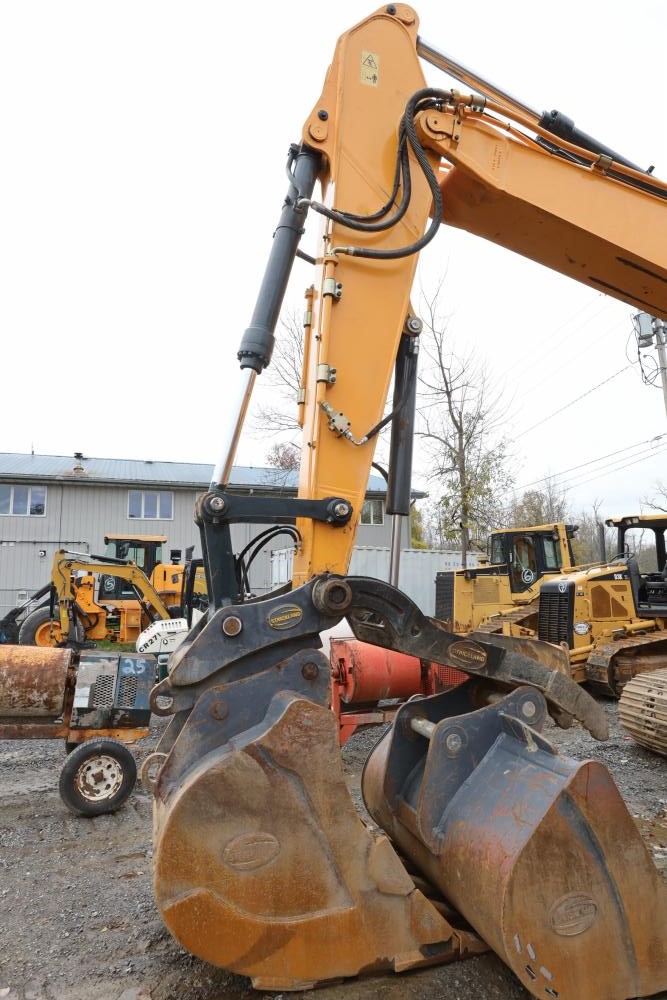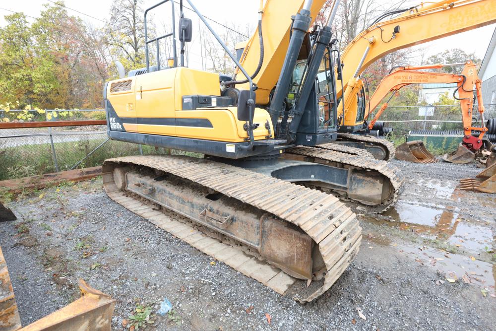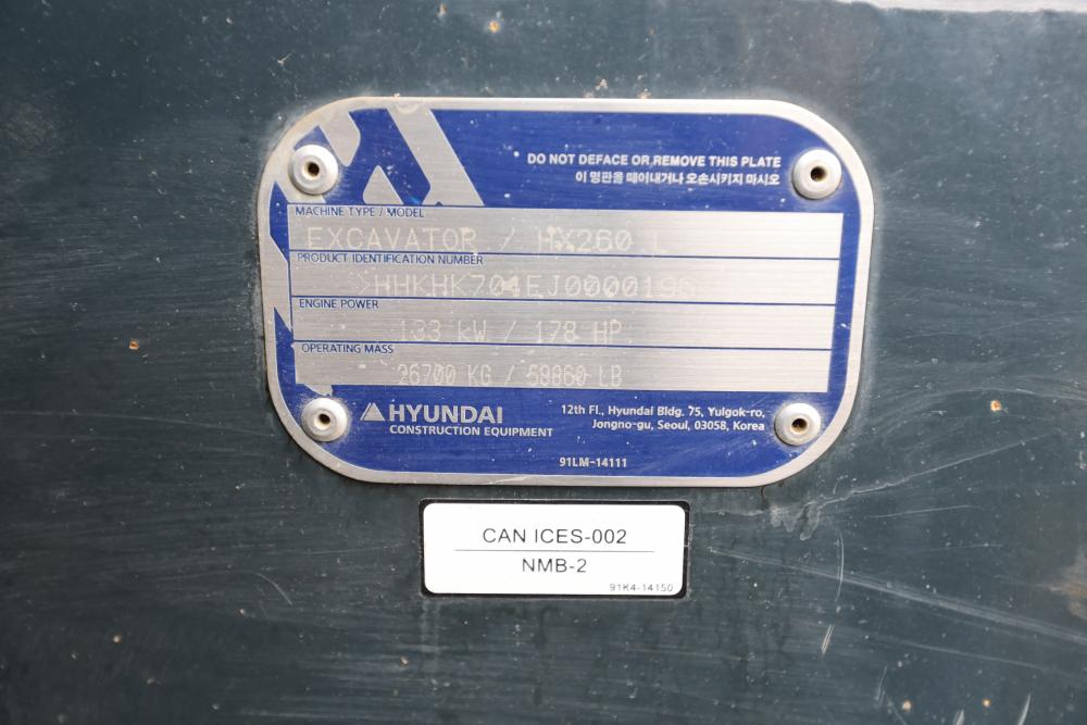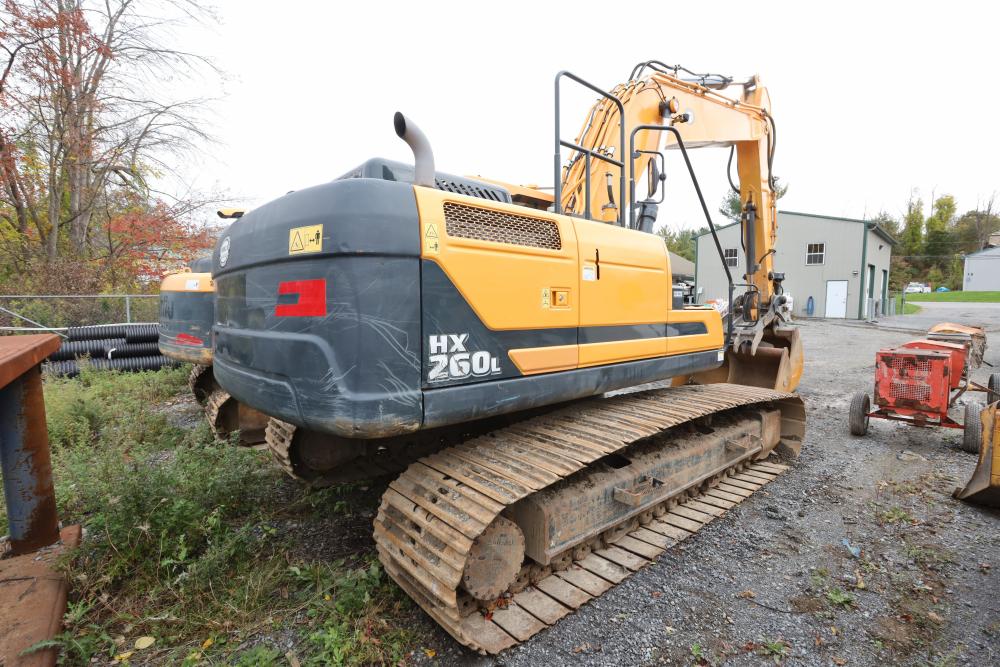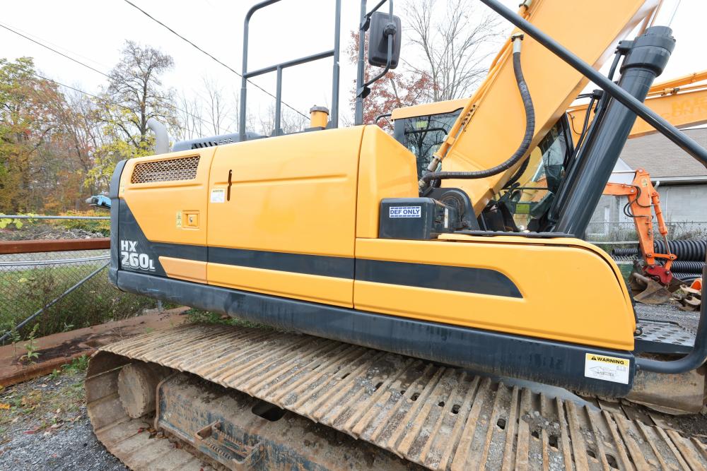 2018 Hyundai HX260L excavator with hydraulic thumb, Strickland bucket, pin grabber, heated seat, AM/FM/Bluetooth radio, Heat, A/C, parts manual and operator's manual, operating mass 58,860, engine power 178HP, PIN number HHKHK704EJ0000196, hour meter reading 1926 at time of photography. Runs and drives, see video. See lot 42 for second bucket not included in this lot. This lot has a reduced Buyer's Premium of 5%.