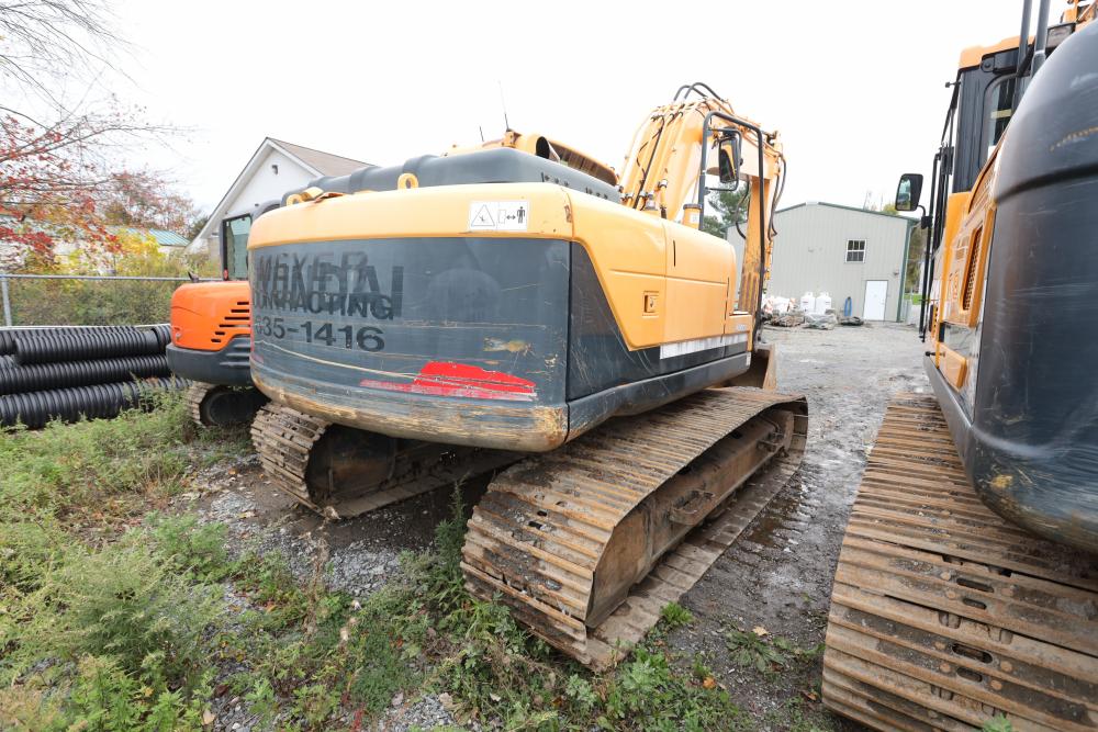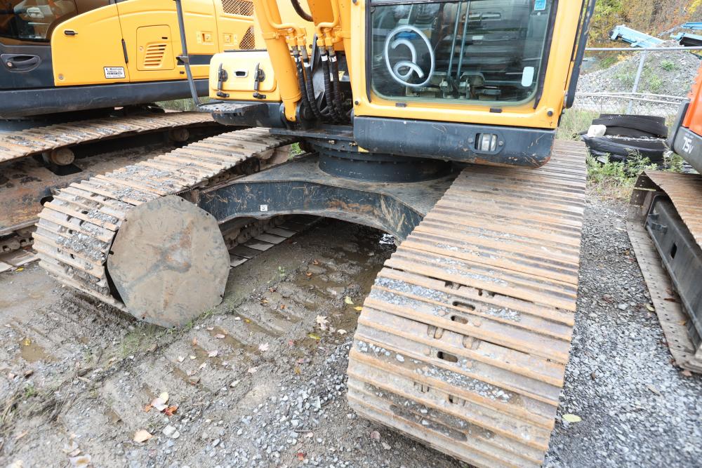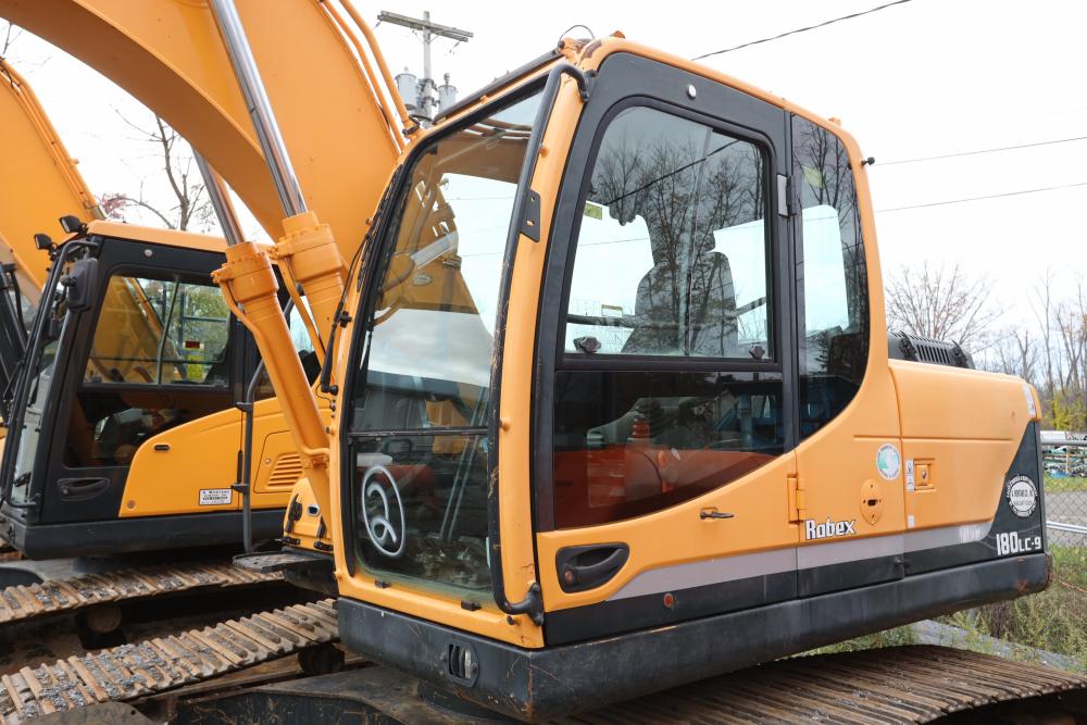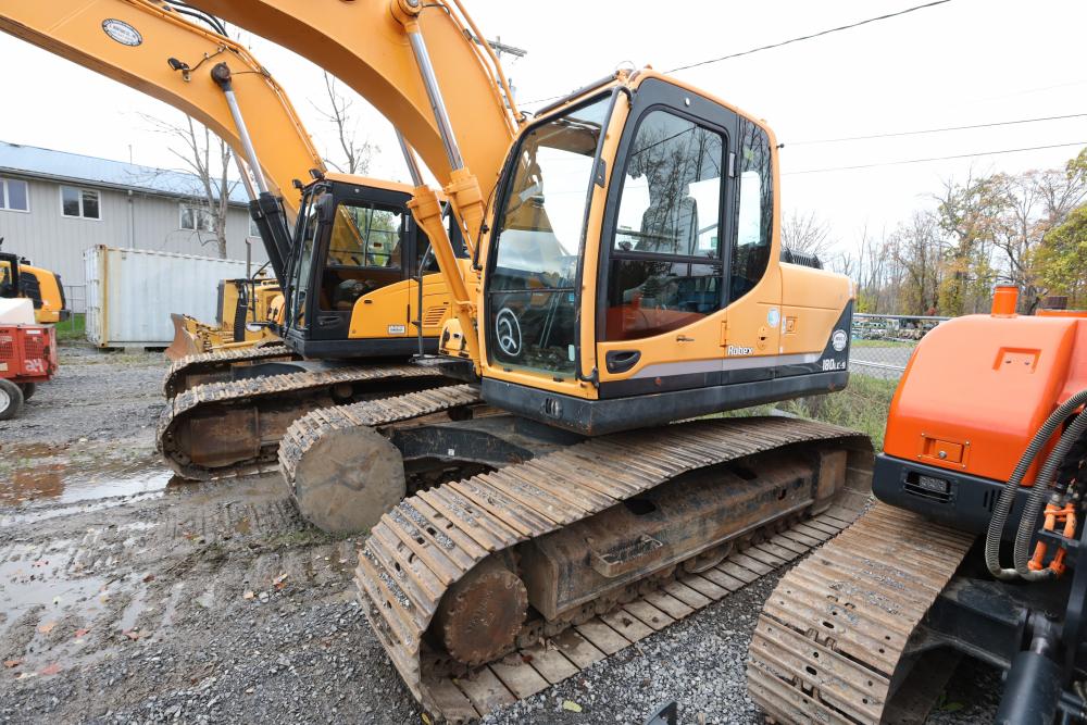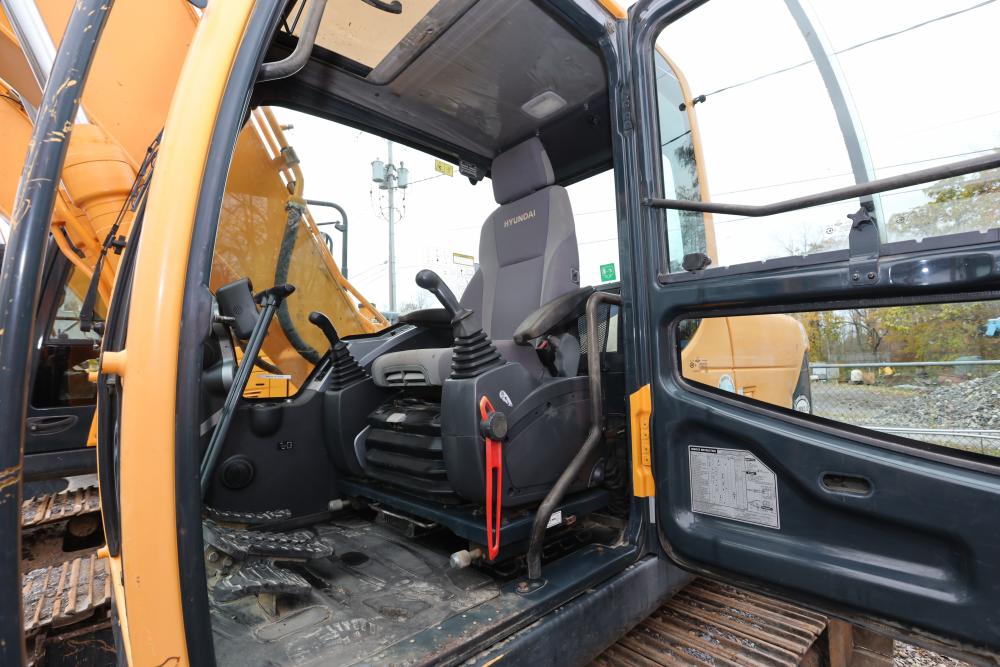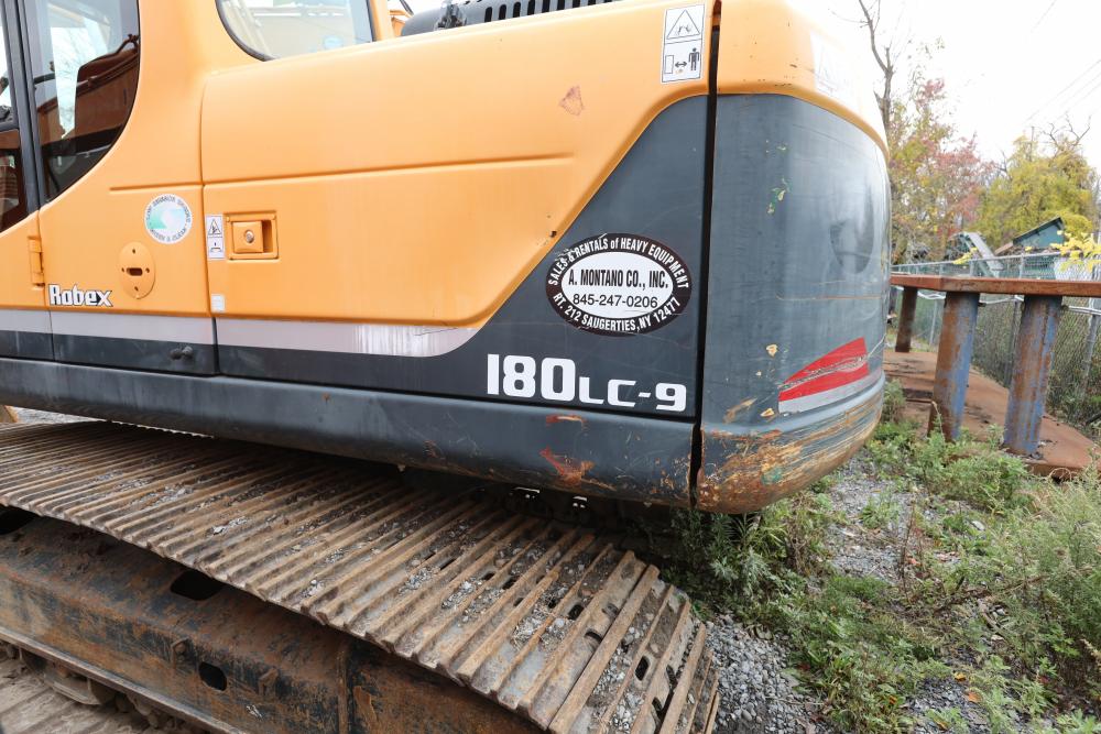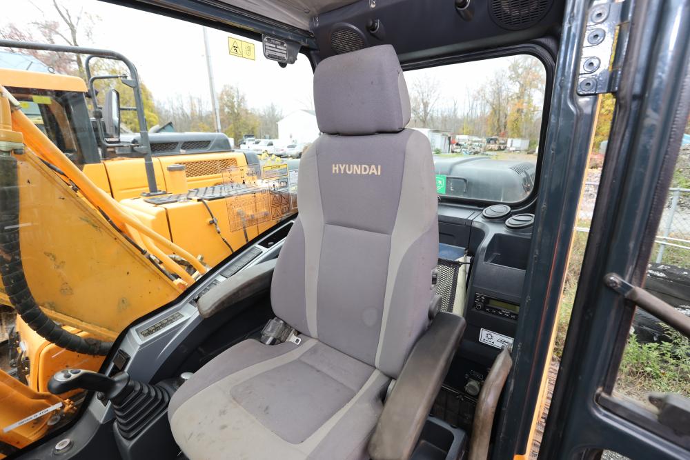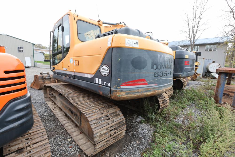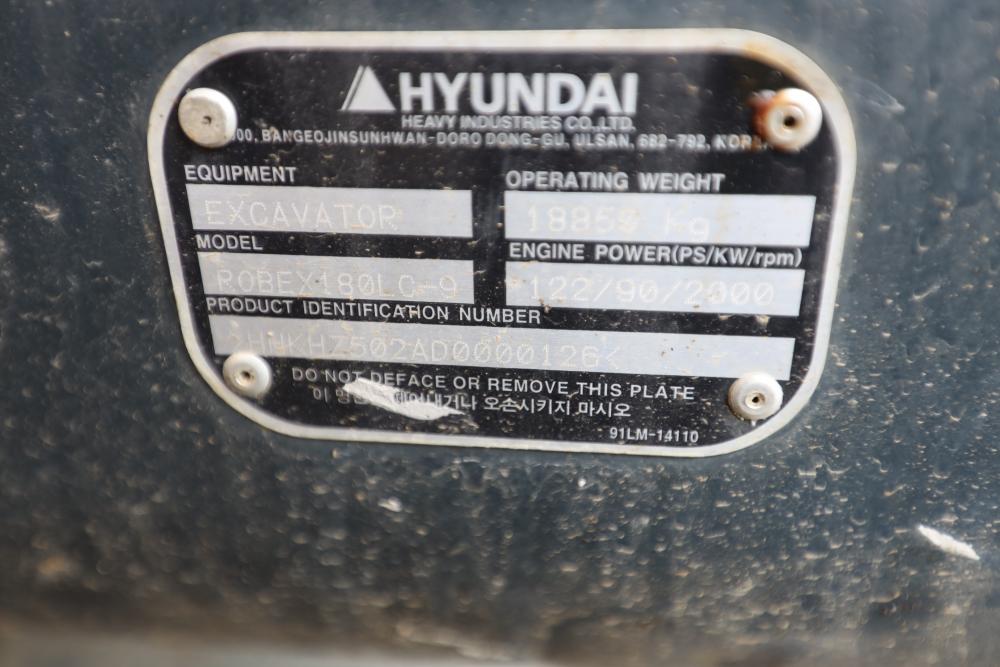 2014 Hyundai Robex 180LC-9 excavator with one bucket, heat, A/C, heated seat, Mitsubishi engine model D04FD-TAAAM/FM/MP3 radio, hour meter reading 3968 at time of photography, engine power rated 122PS, operating weight 18859 KG. PIN number HHKHZ502AD0000126. Runs and drives, see video. See lot 43 for second bucket not included in this lot.