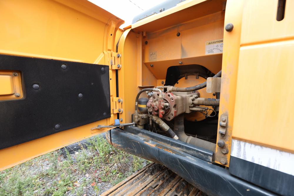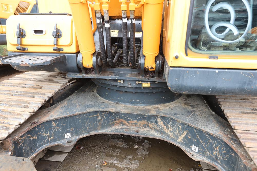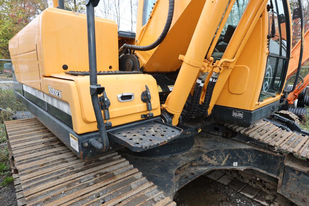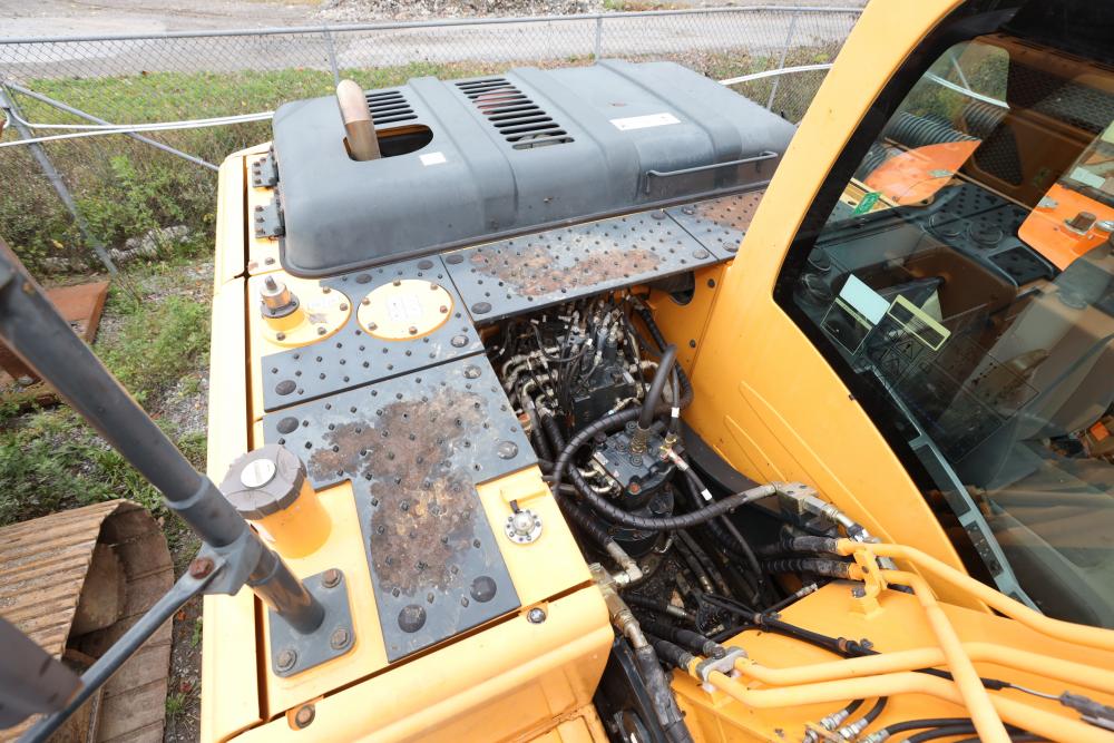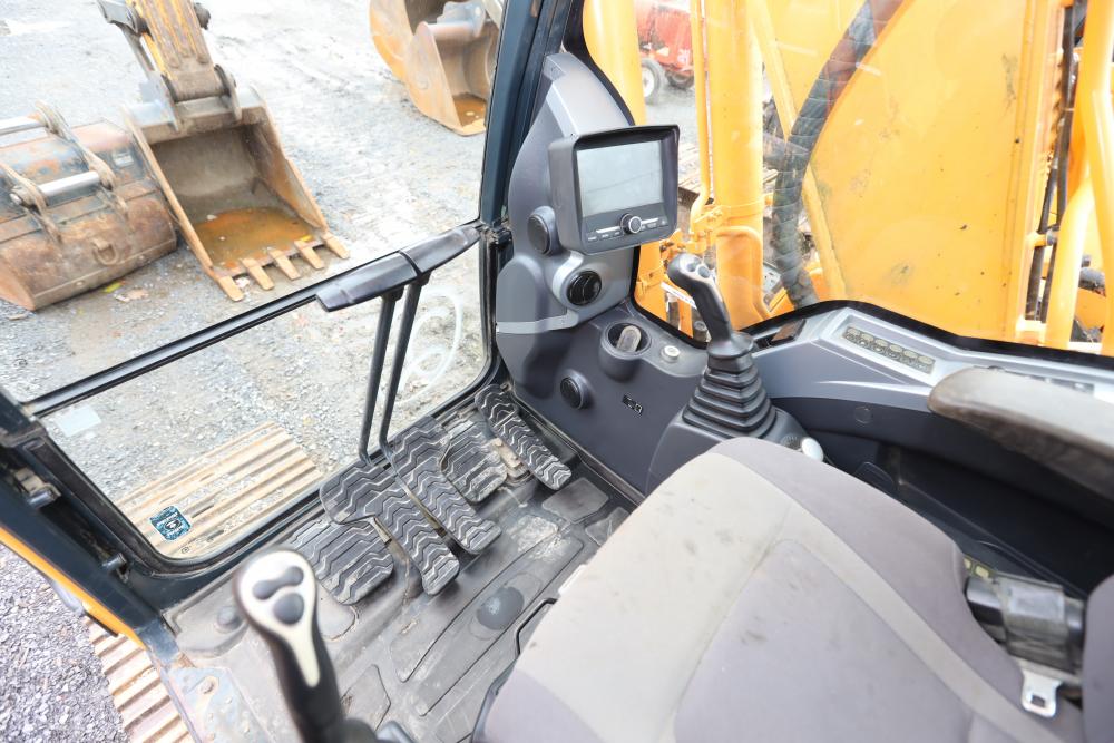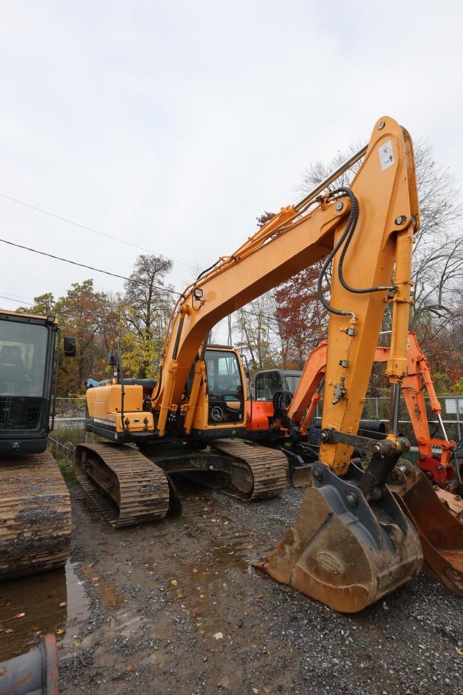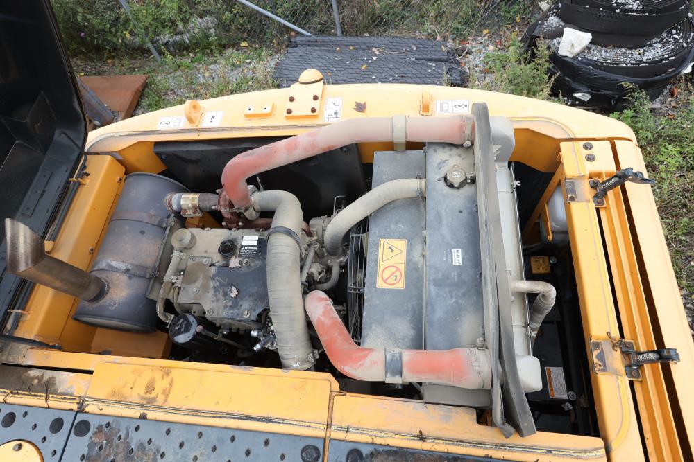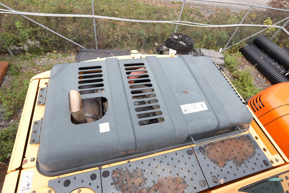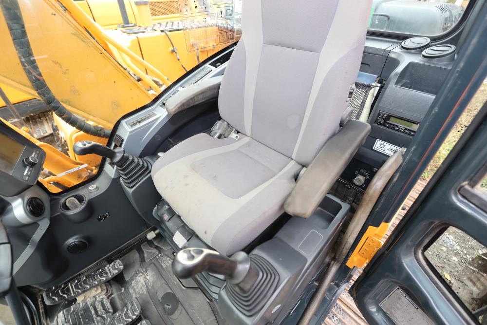 2014 Hyundai Robex 180LC-9 excavator with one bucket, heat, A/C, heated seat, Mitsubishi engine model D04FD-TAAAM/FM/MP3 radio, hour meter reading 3968 at time of photography, engine power rated 122PS, operating weight 18859 KG. PIN number HHKHZ502AD0000126. Runs and drives, see video. See lot 43 for second bucket not included in this lot.