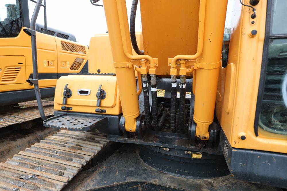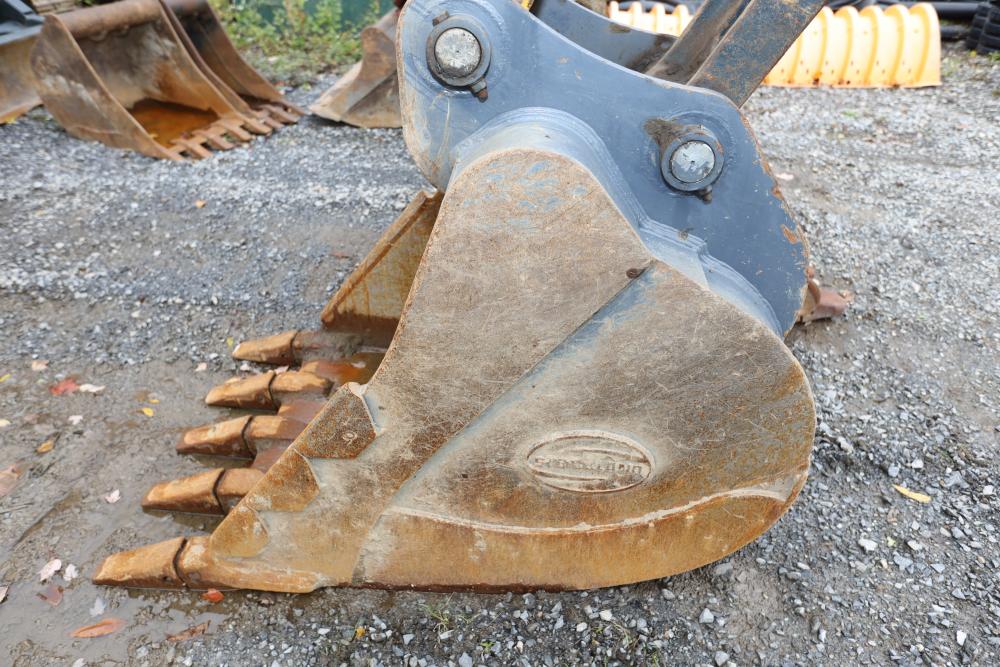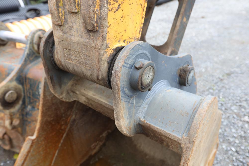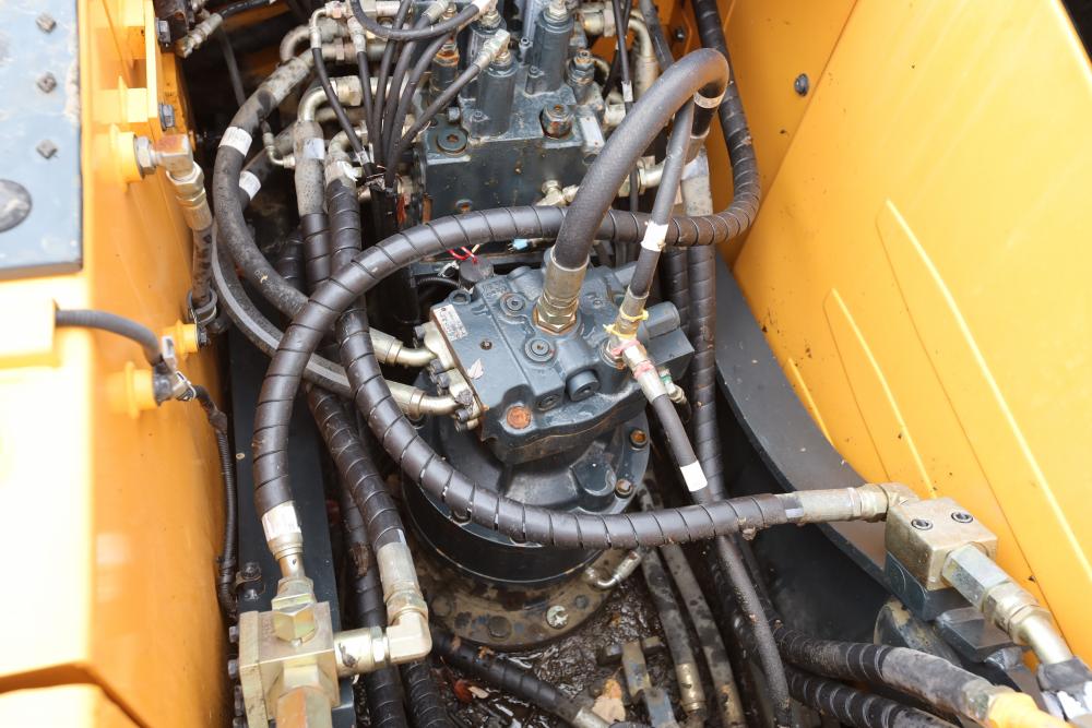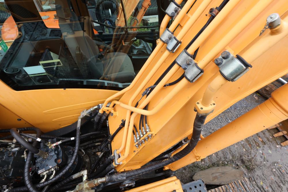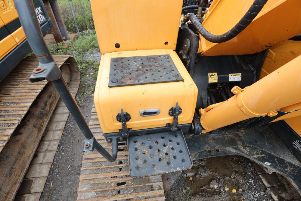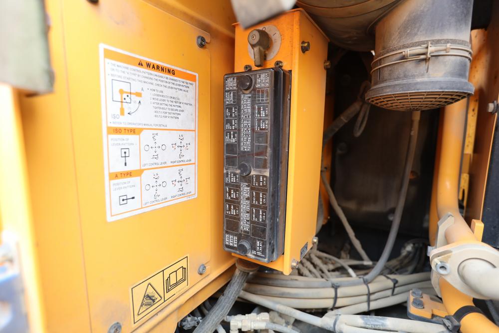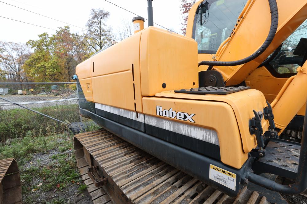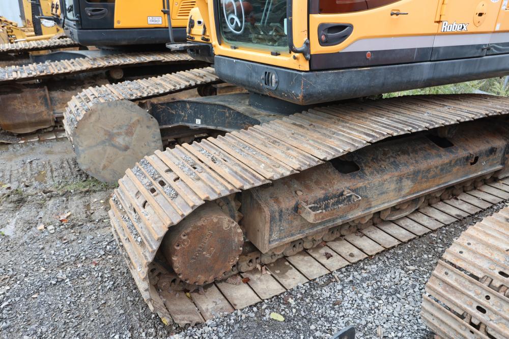 2014 Hyundai Robex 180LC-9 excavator with one bucket, heat, A/C, heated seat, Mitsubishi engine model D04FD-TAAAM/FM/MP3 radio, hour meter reading 3968 at time of photography, engine power rated 122PS, operating weight 18859 KG. PIN number HHKHZ502AD0000126. Runs and drives, see video. See lot 43 for second bucket not included in this lot.