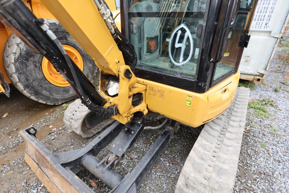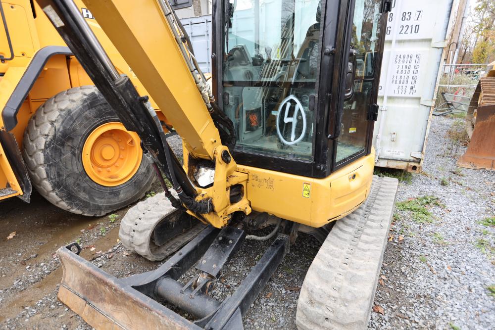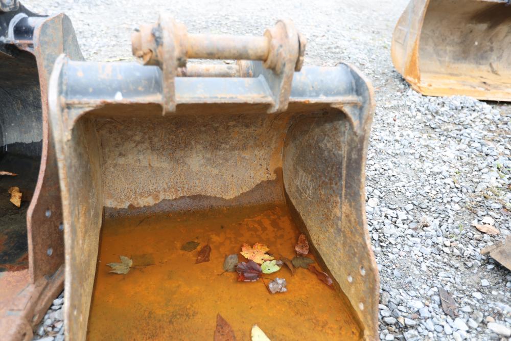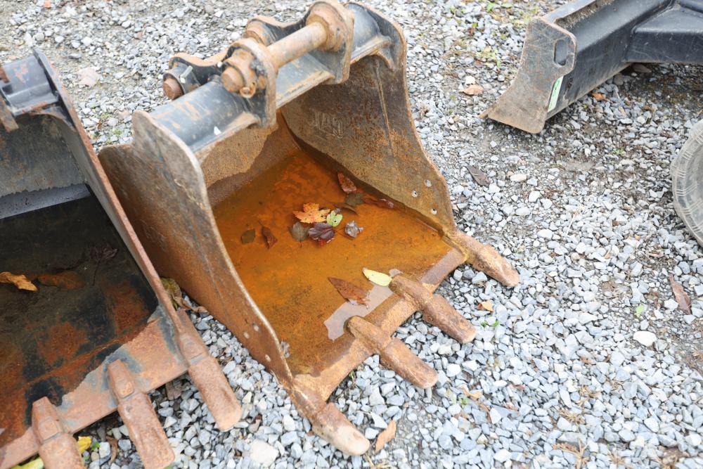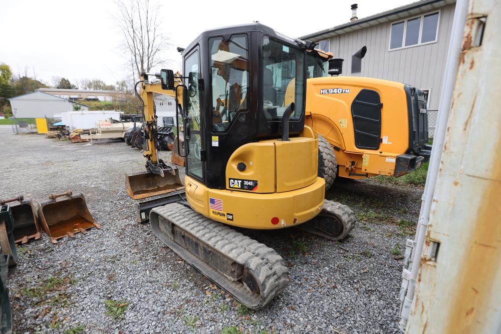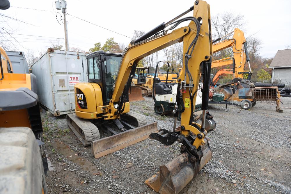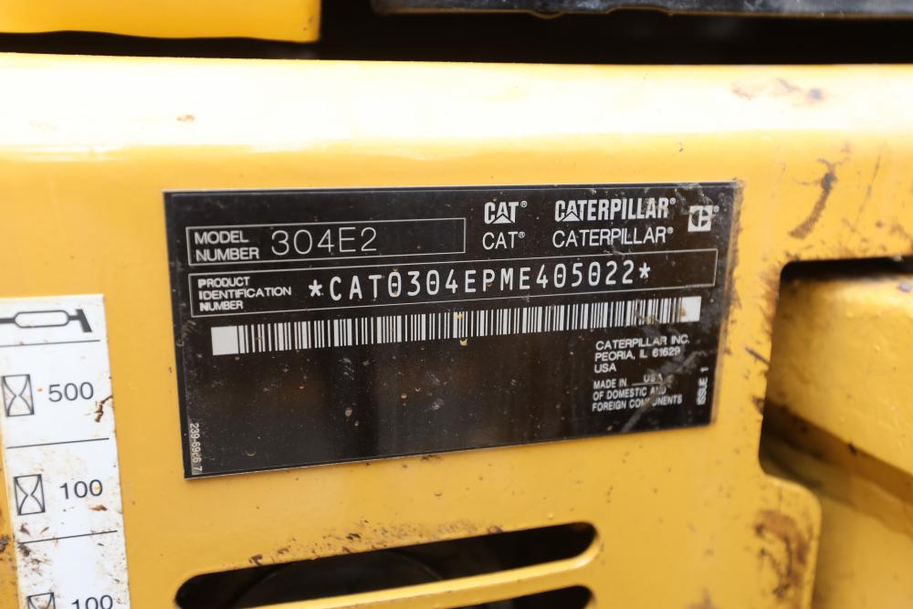 2018 Caterpillar 304E2 CR excavator with grading blade, digging bucket, hydraulic thumb, Heat, A/C, AM/FM/Bluetooth radio, hour meter reading 1843 at time of photography. PIN number CAT0304EPME405022. Runs and drives, see video. Grading bucket attached to machine in photos NOT INCLUDED. See lot 49 for second bucket not included in this lot. This lot has a reduced Buyer's Premium of 5%.