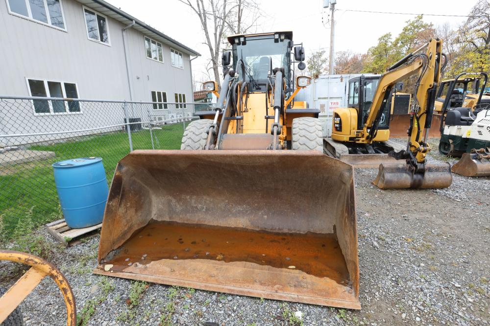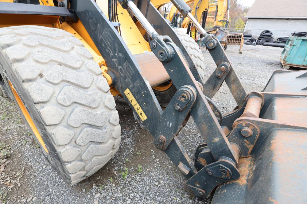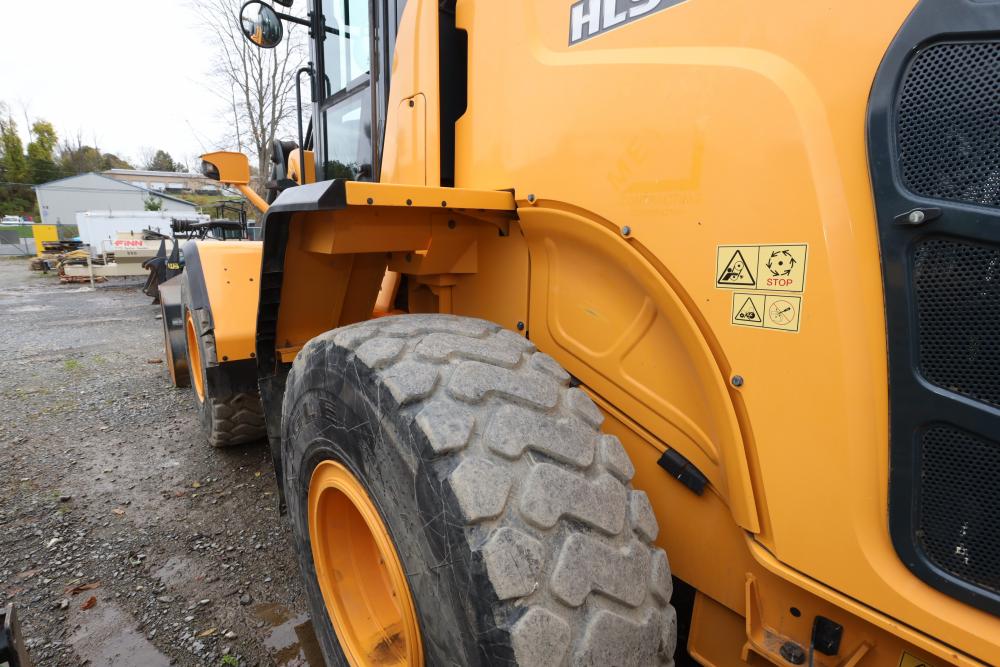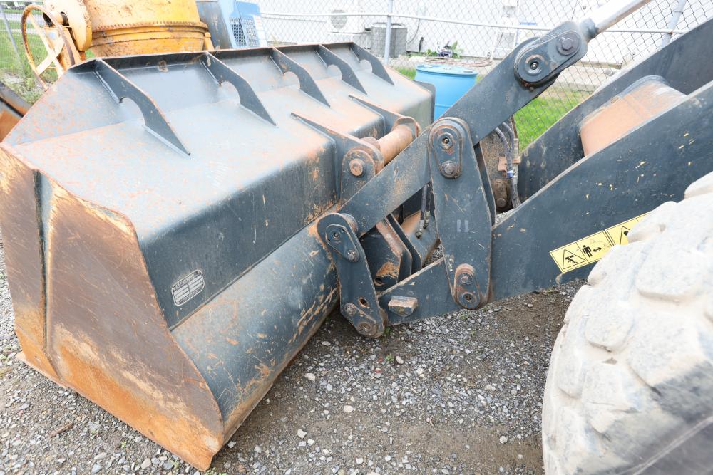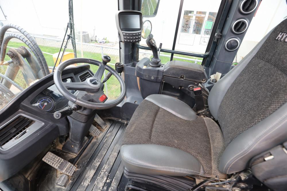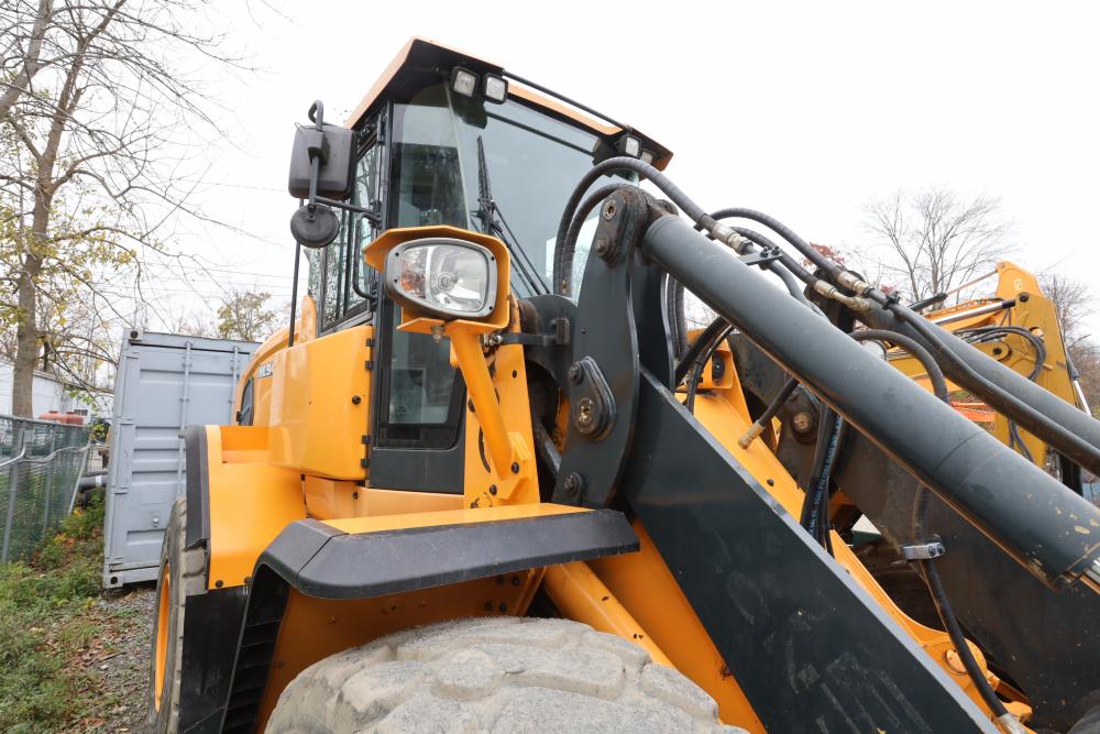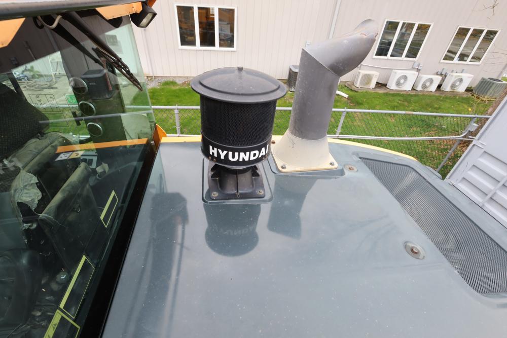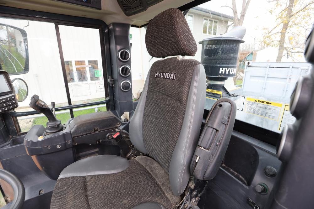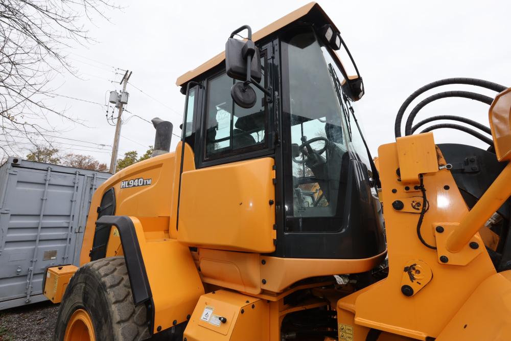 Hyundai HL940TM articulating wheel loader with 3.00 yd bucket part number 61WB-20010, On-Board auto weighing system, backup camera, Heat, A/C, AM/FM/Bluetooth radio, hour meter reading 4540 at time of photography. Runs and drives, see video. See lots 50 and 51 for second bucket and forks not included in this lot.