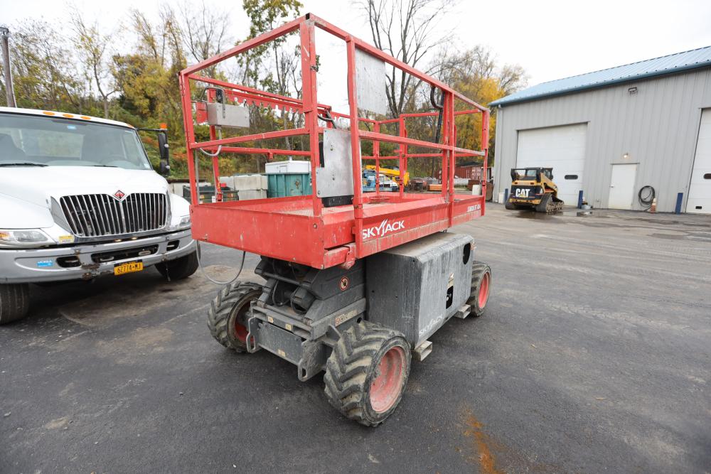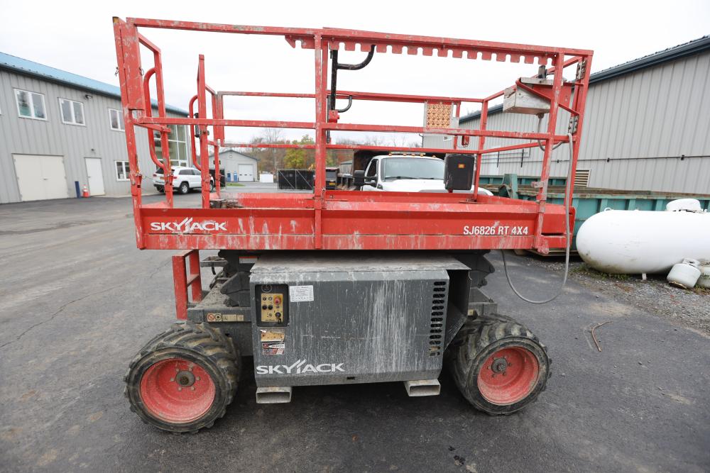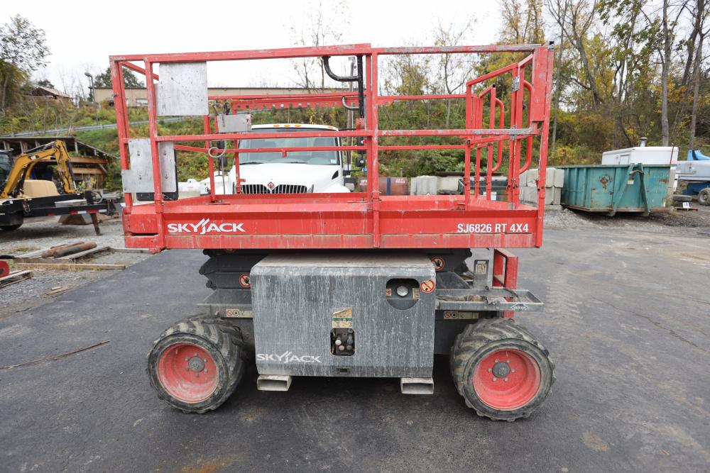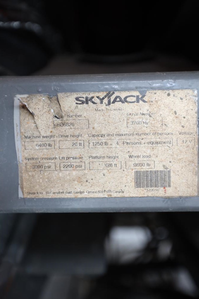 SkyJack lift model SJ6826RT 4X4, platform height 36' hour meter reading 2080 hours at time of photography, see video.