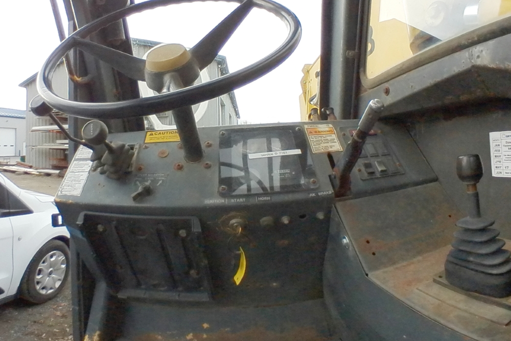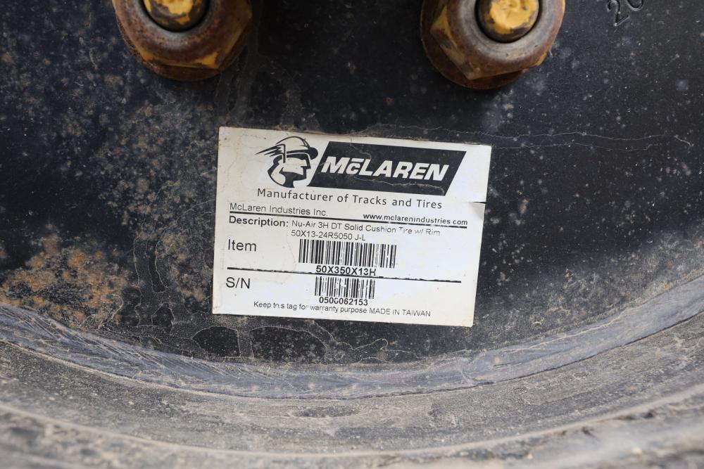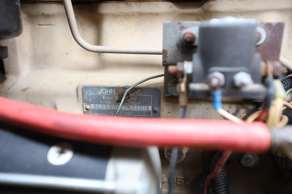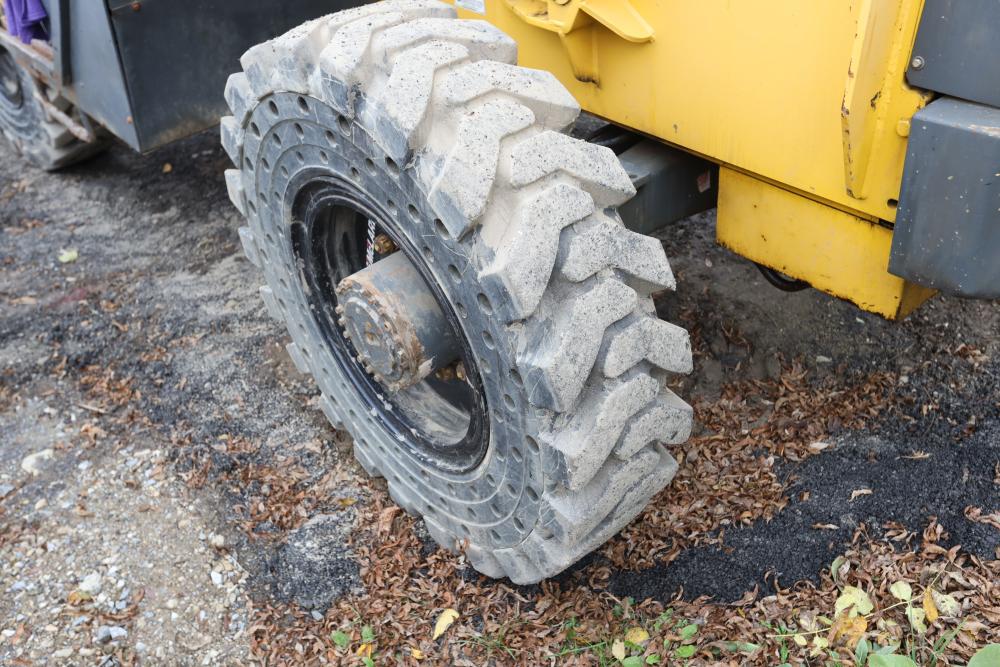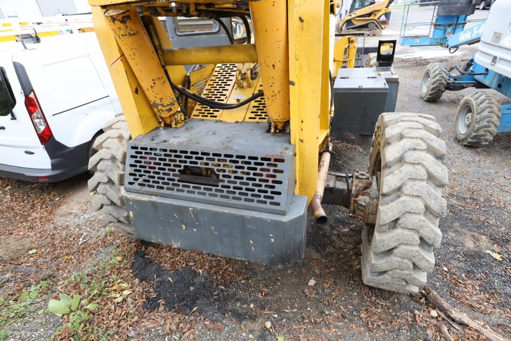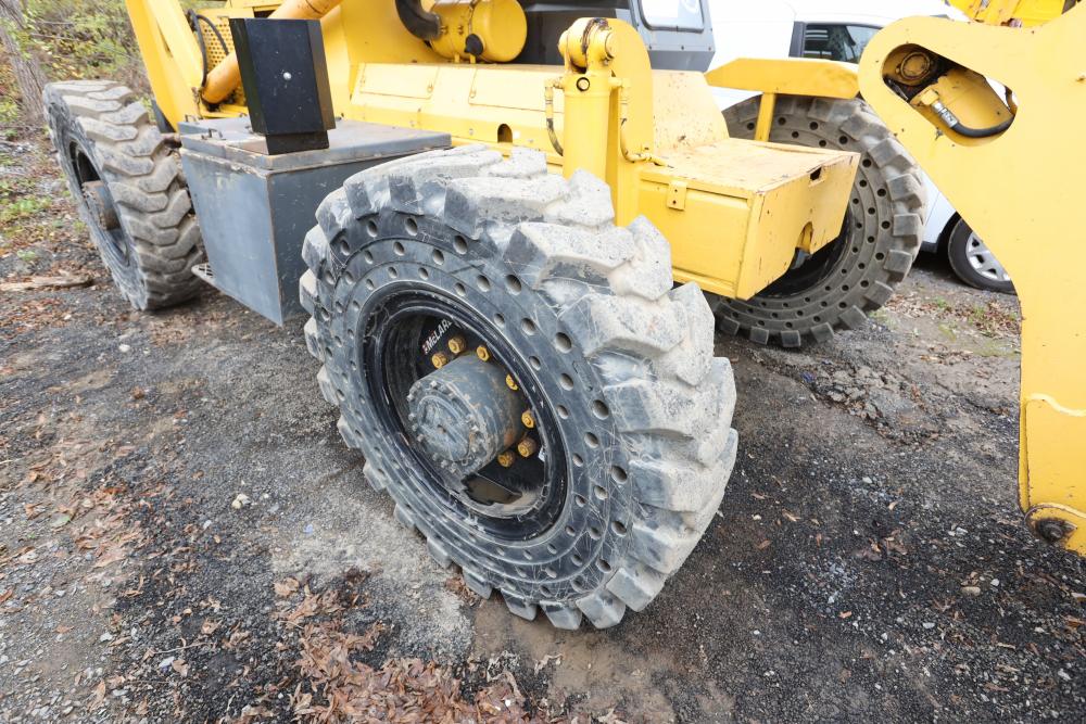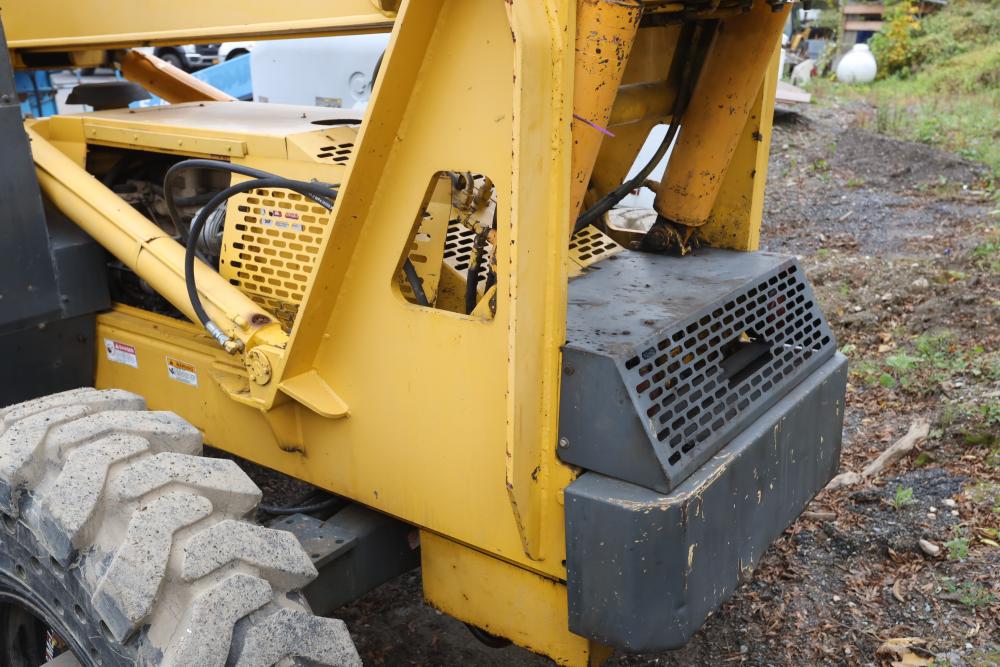 Gehl 883 telehandler part number 070PP128-1, John Deere engine, airless tires, with fork attachment, hour meter reading 6919 hours at time of photography. Runs and Drives, see video. See lots 52 for bucket not included in this lot.