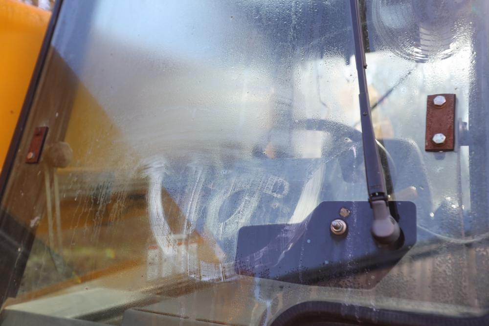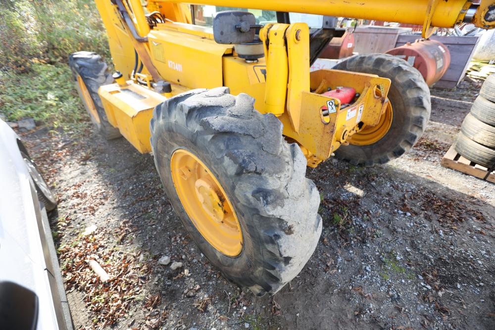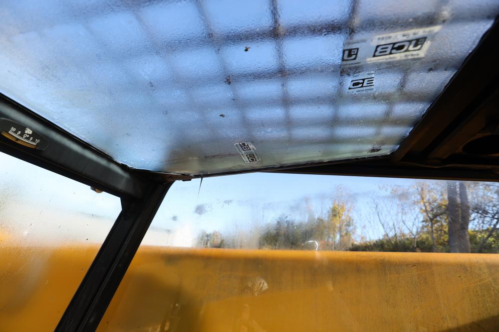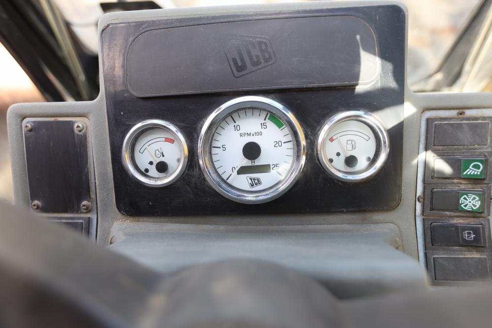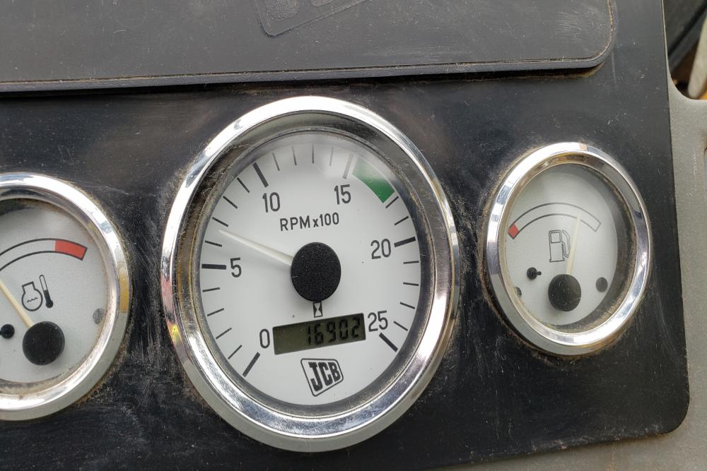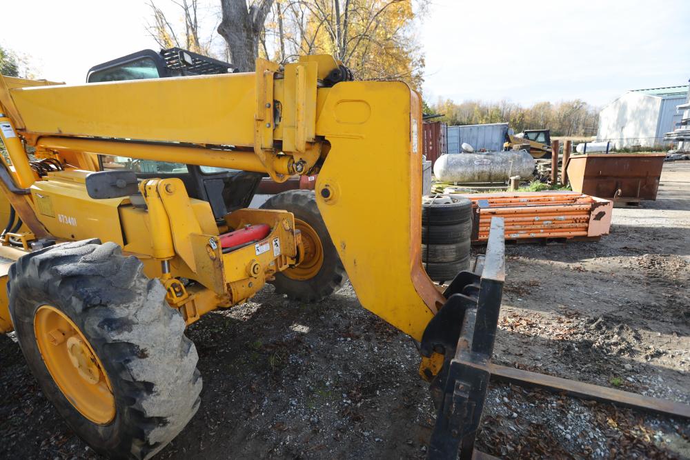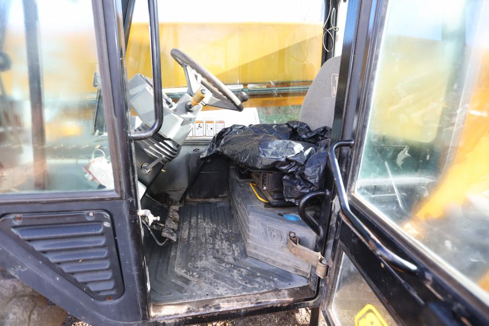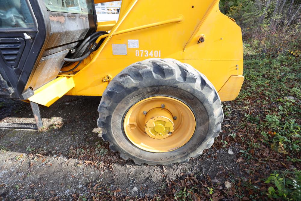 2006 JCB telehandler model 506CHL, with fork attachment, enclosed cab, hand and foot controls, hour meter reading 16902 at time of cataloging. PIN number 1184480. Runs and drives, see video.