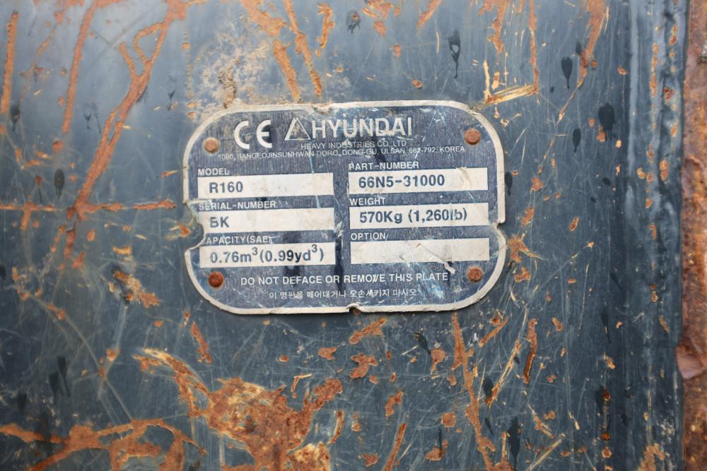 Hyundai bucket model R160 .99yd part number 66N5-31000 for Hyundai Robex 180LC-9 excavator. See lot 2 for excavator not included in this lot.