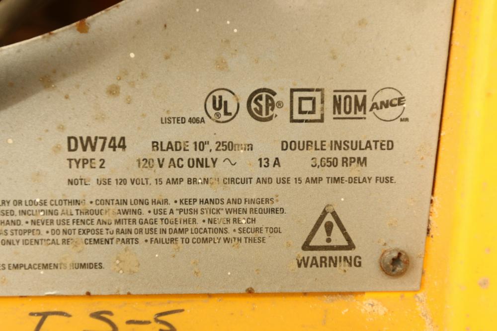 DeWalt 10" job site table saw model DW744 type 2, on DeWalt table saw stand. Does not turn on.