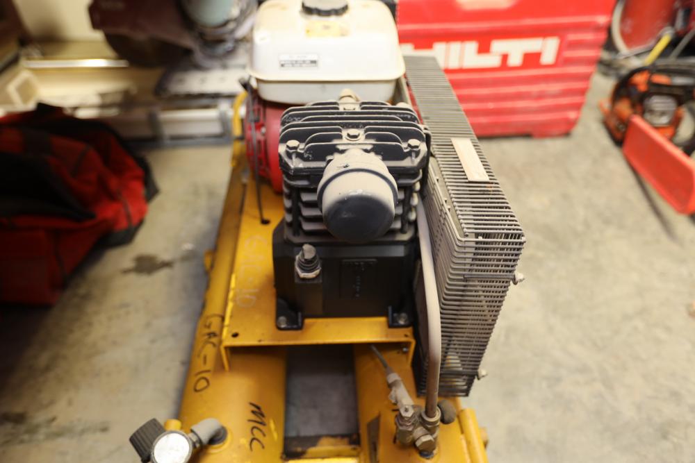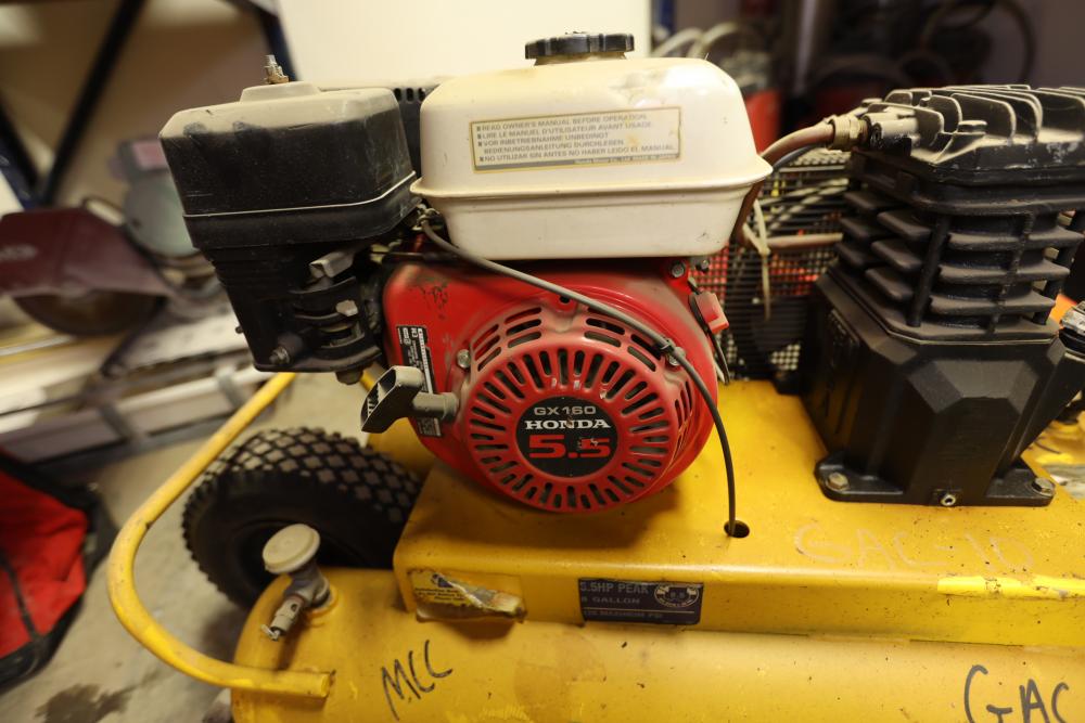 Wheelbarrow air compressor with a Honda 5.5Hp peak engine model GX160, 8 gallons 125 Psi max.