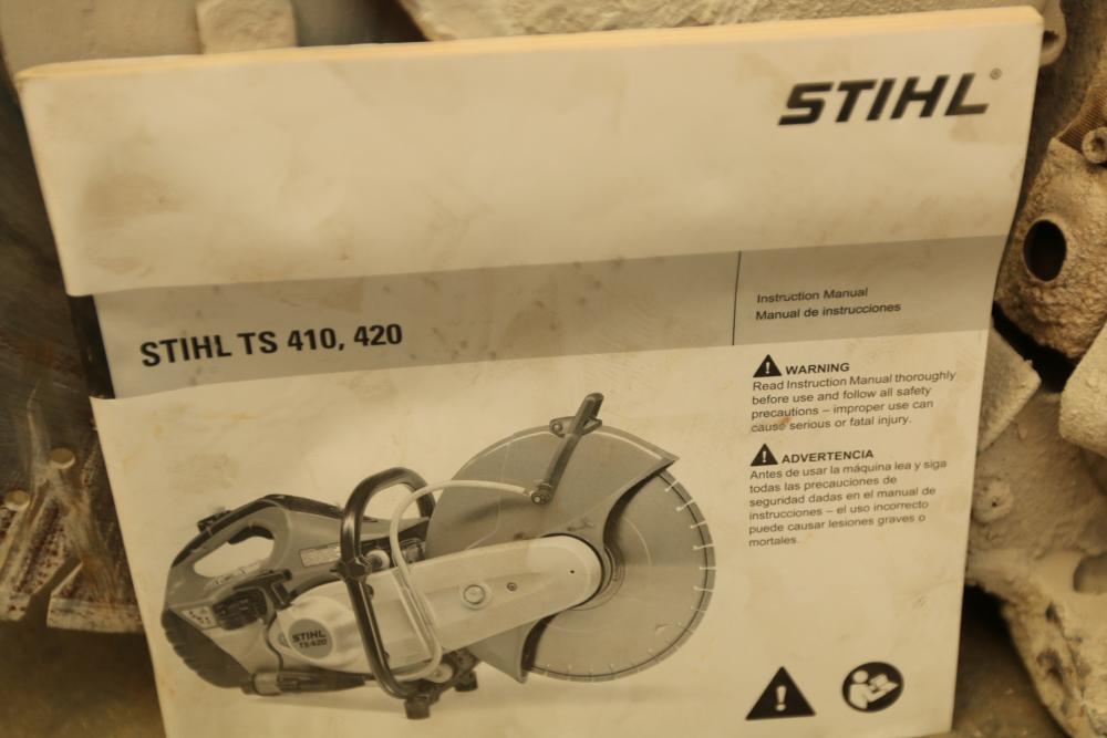 Stihl TS420 Cutquik 14" gas powered cut off saw with 66.7cc displacement, and instructions manual.