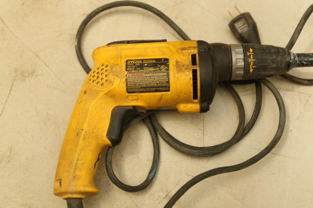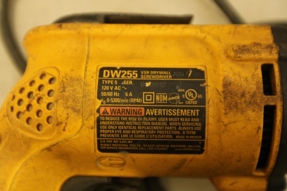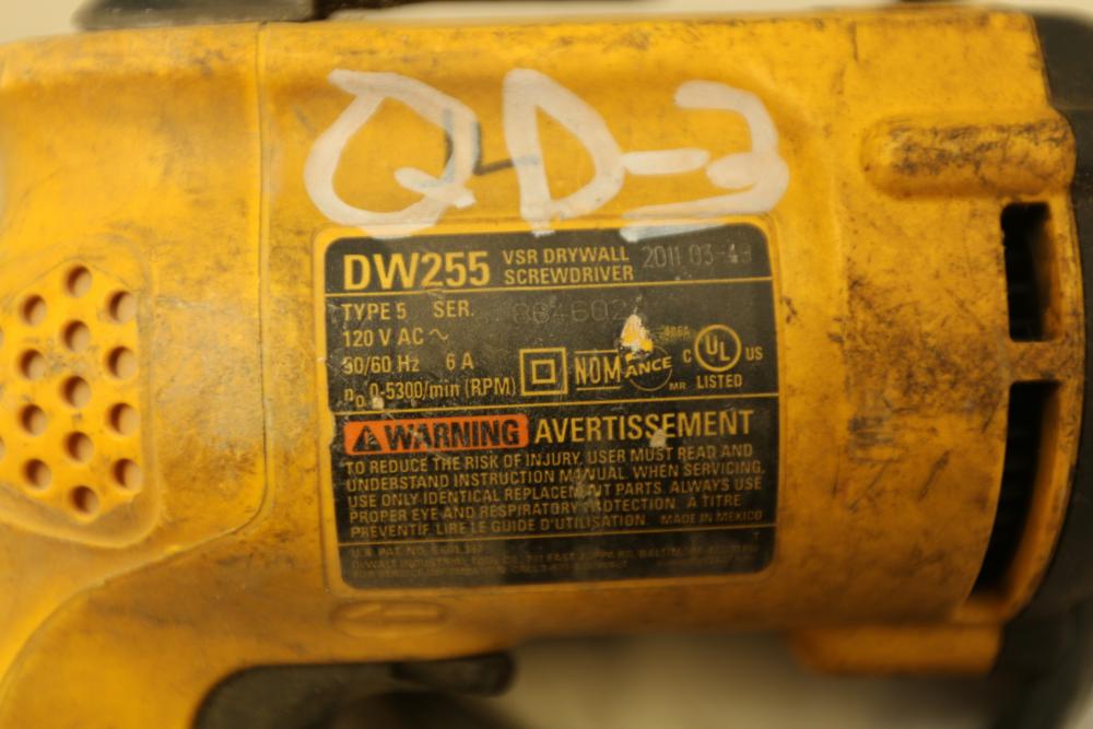 Three DeWalt corded VSR drywall screwdrivers model DW255, 120V.