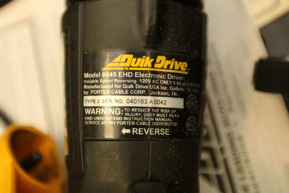 Quik Drive electronic driver model 6645 EHD, 120V, with auto-feed screw driving tool QD2000, in plastic case.
