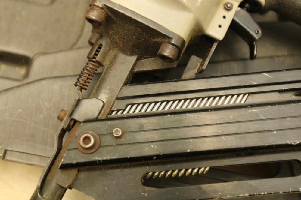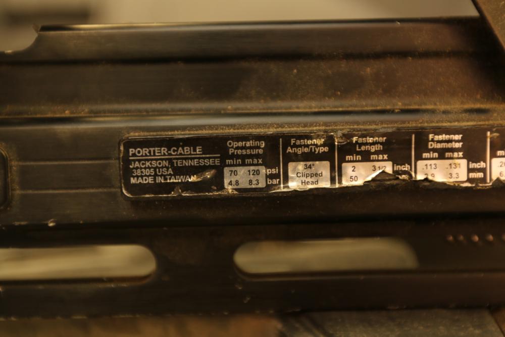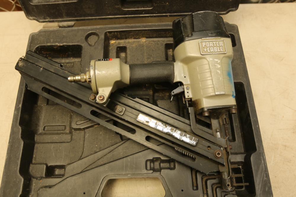 PorterCable pneumatic clipped head framing nailer model FC350 in plastic case.