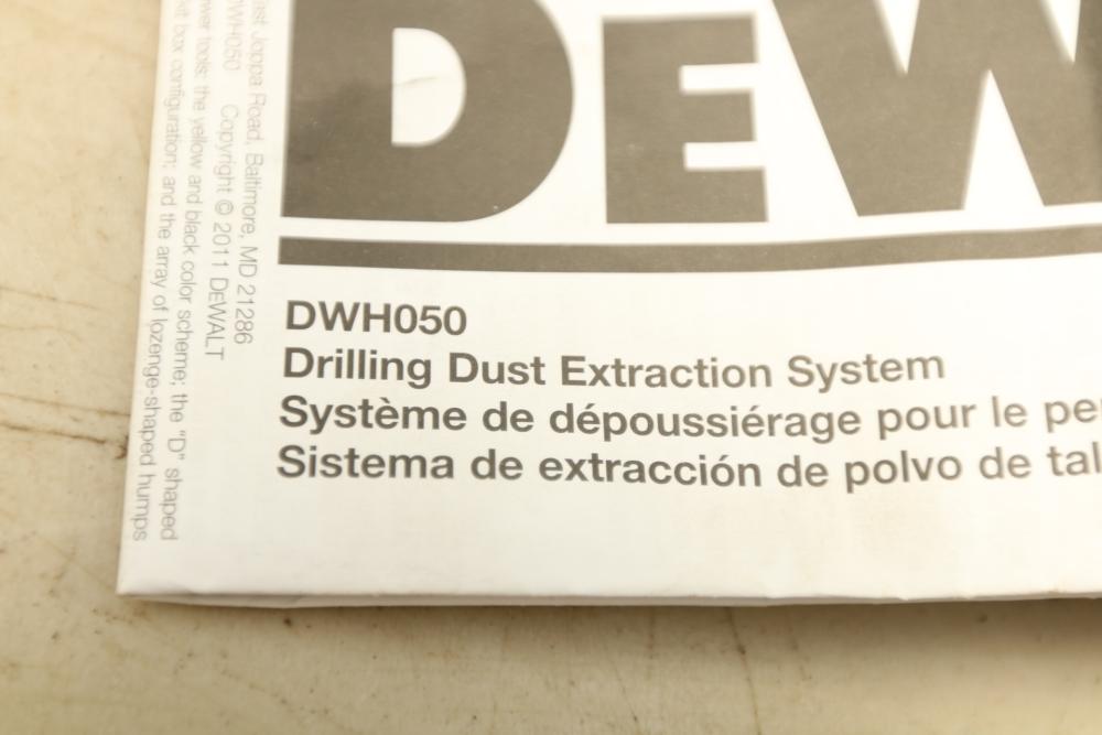 DeWalt drilling dust extraction system model DWH050, in plastic case appearing to be complete with instruction manual.