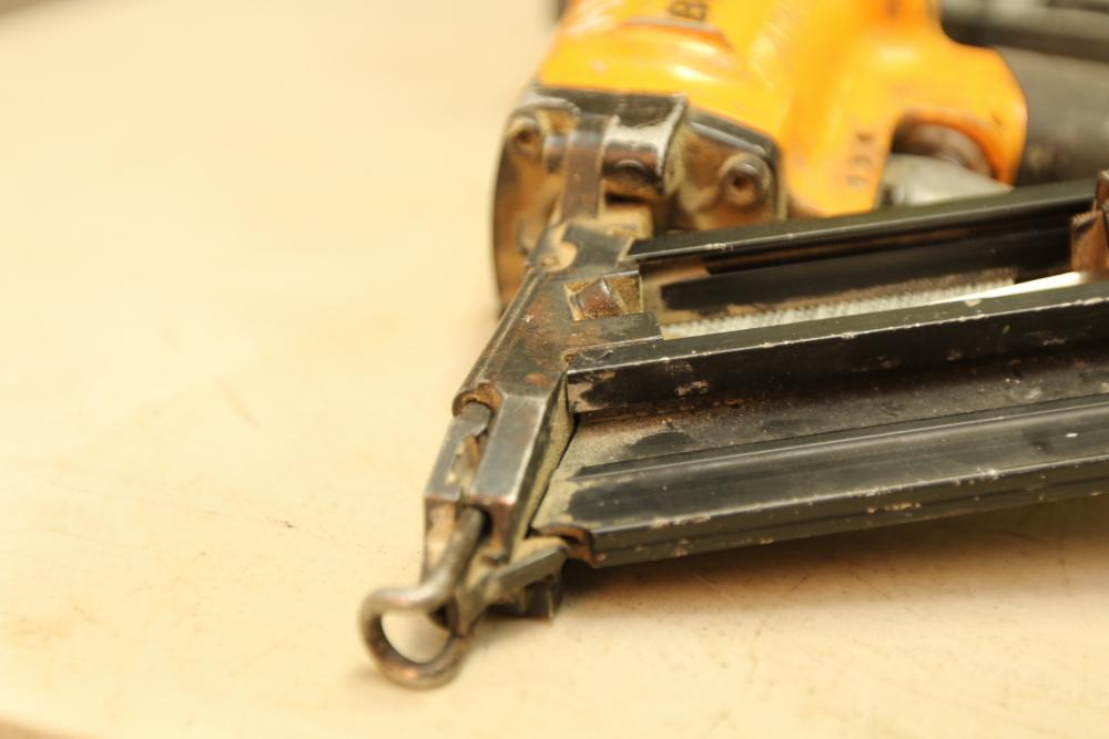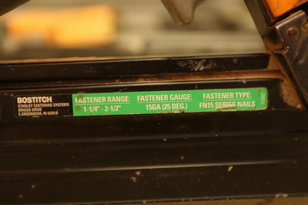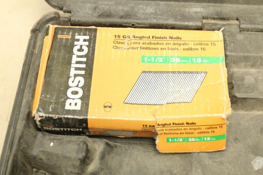 Bostitch pneumatic angle finish nailer model N59FN for 15Ga fasteners, in plastic case.