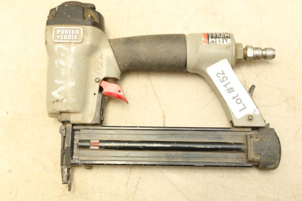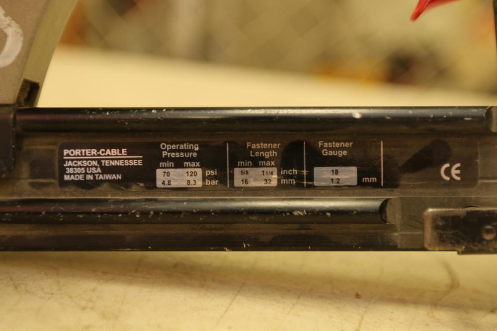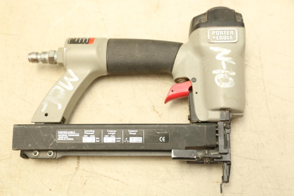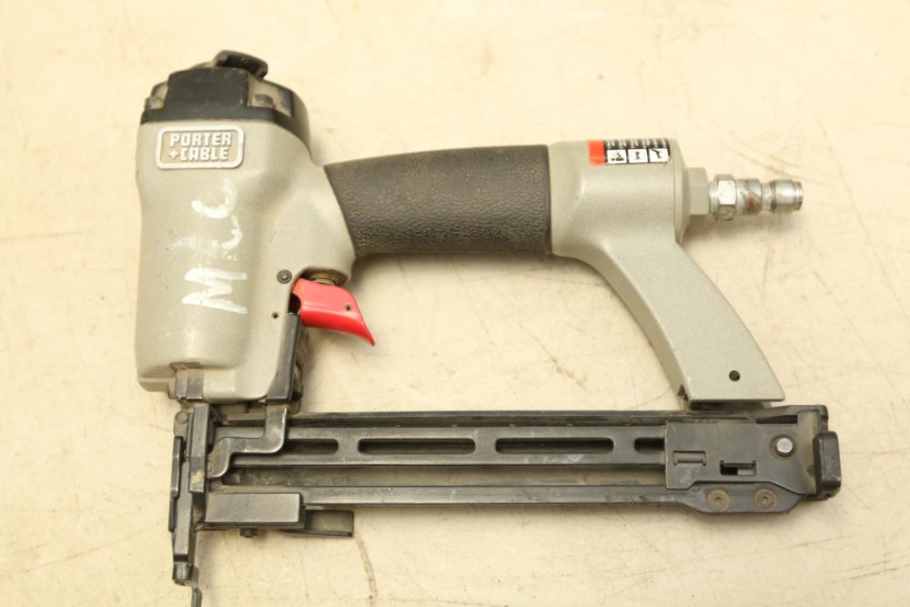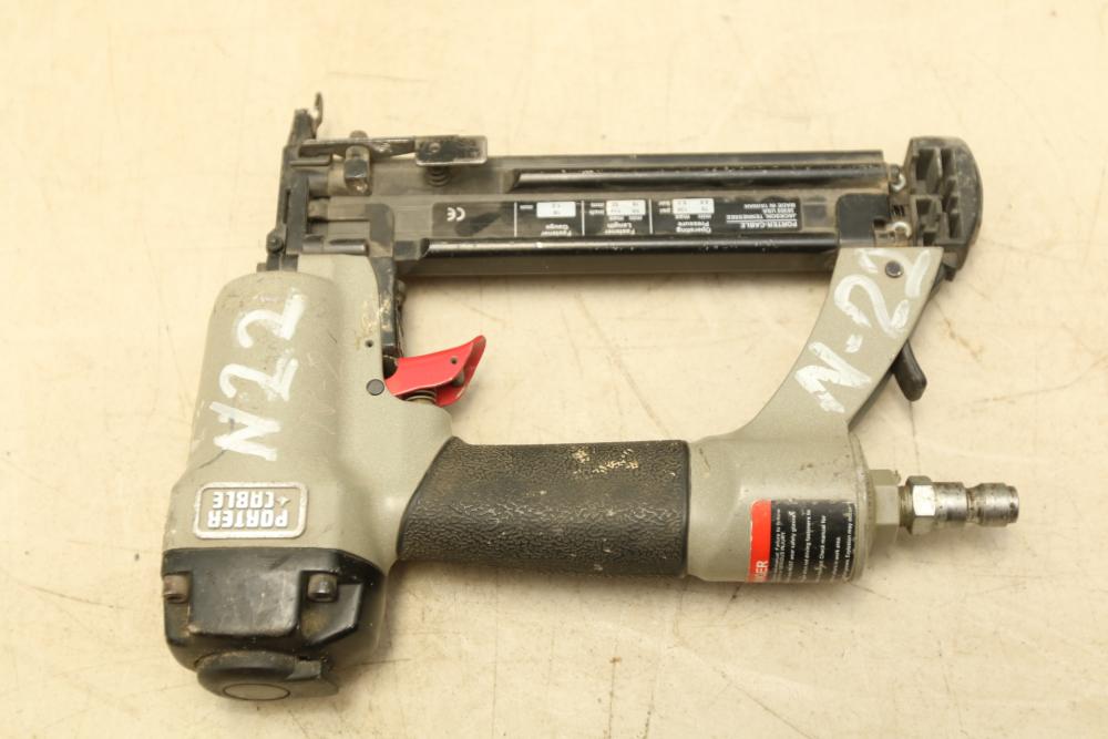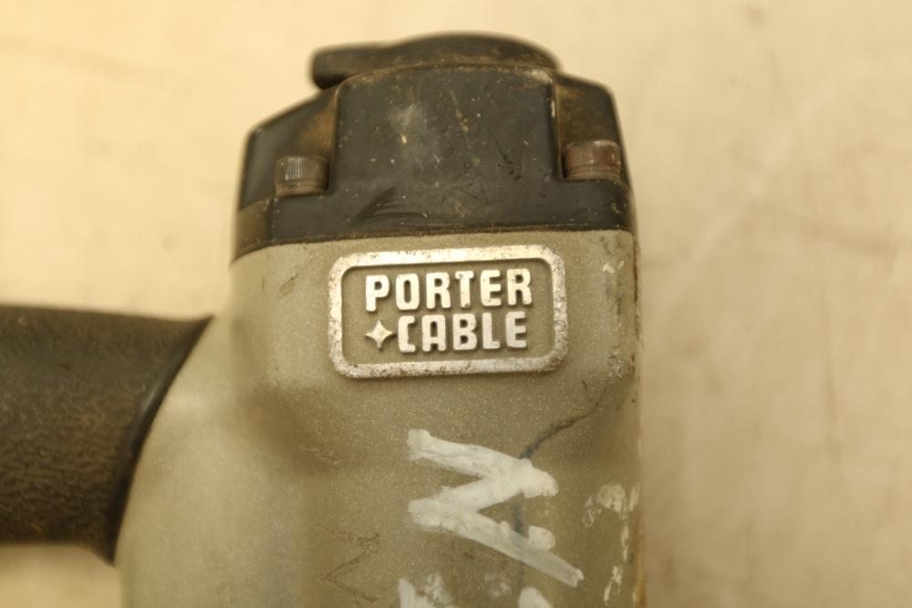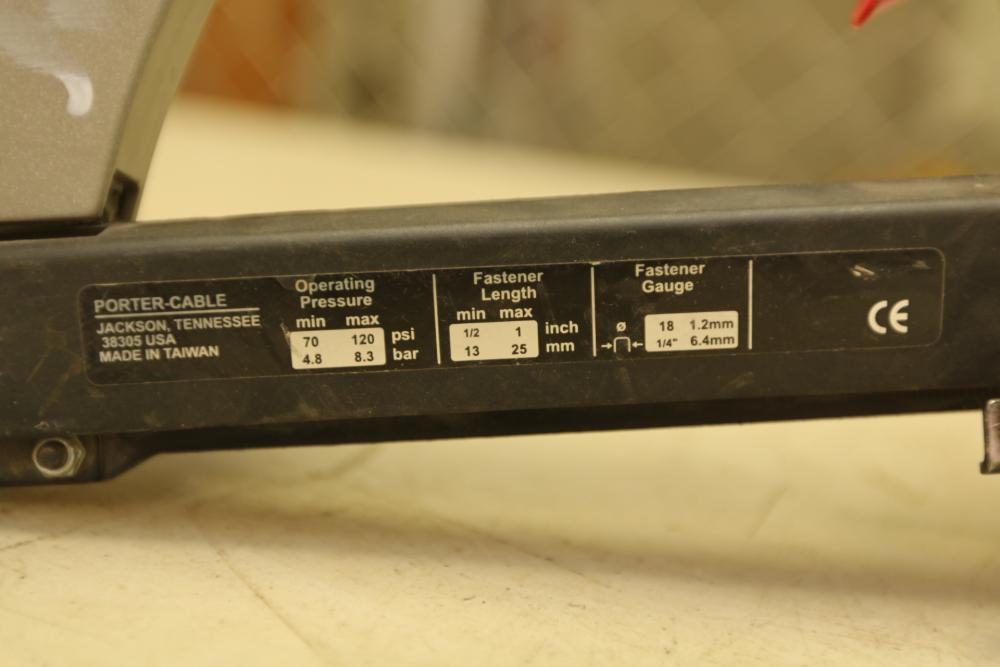Two Porter Cable Pneumatic nailers one 1/4" narrow crown stapler model NS 100A, and 18 Ga brad nailer model BN 125A.