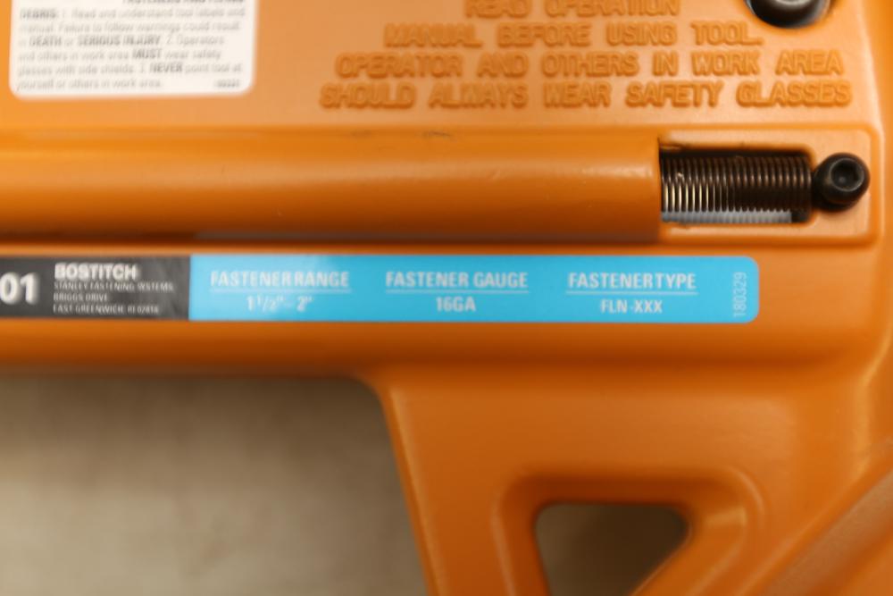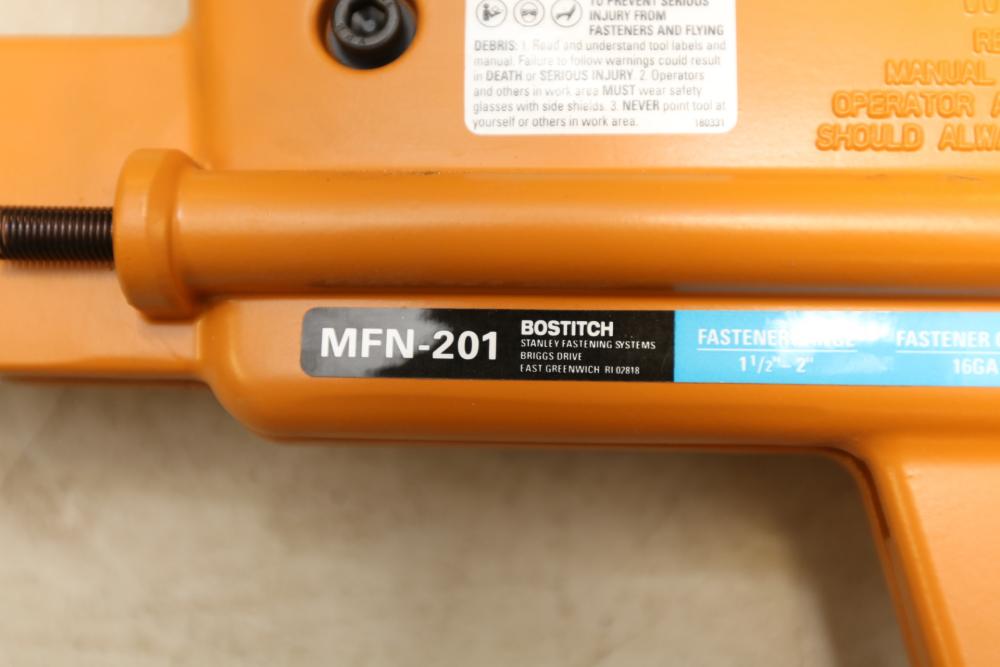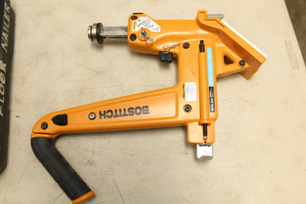 Bostitch model MFN-201 flooring nailer with graphite hammer in plastic case.