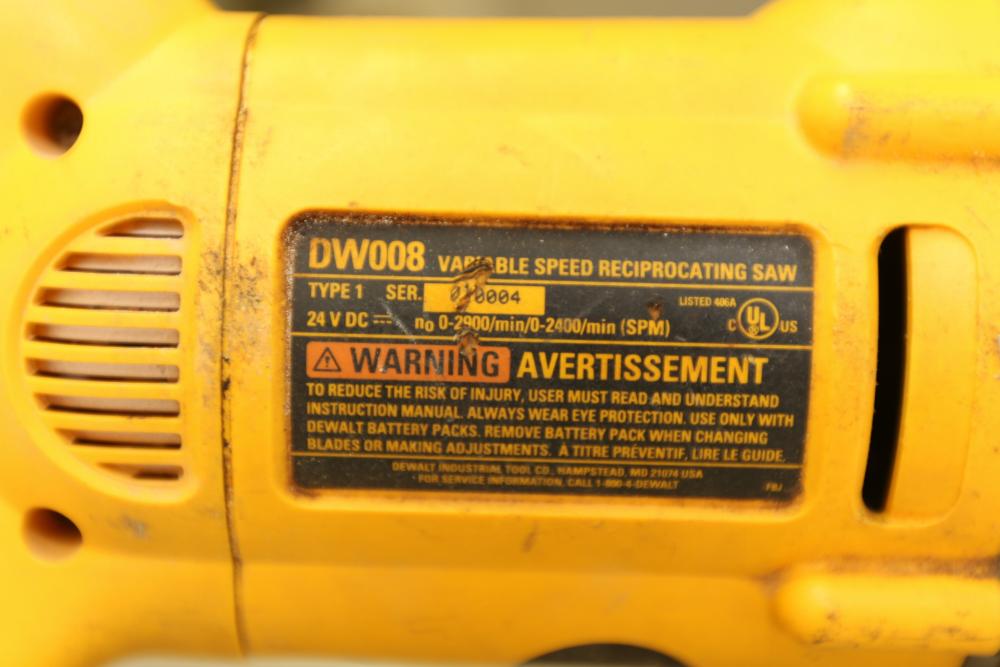 DeWalt variable speed reciprocating saw model DW008 type 1, 24V, one battery, Charger Not Included.