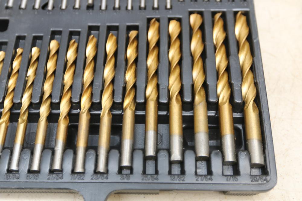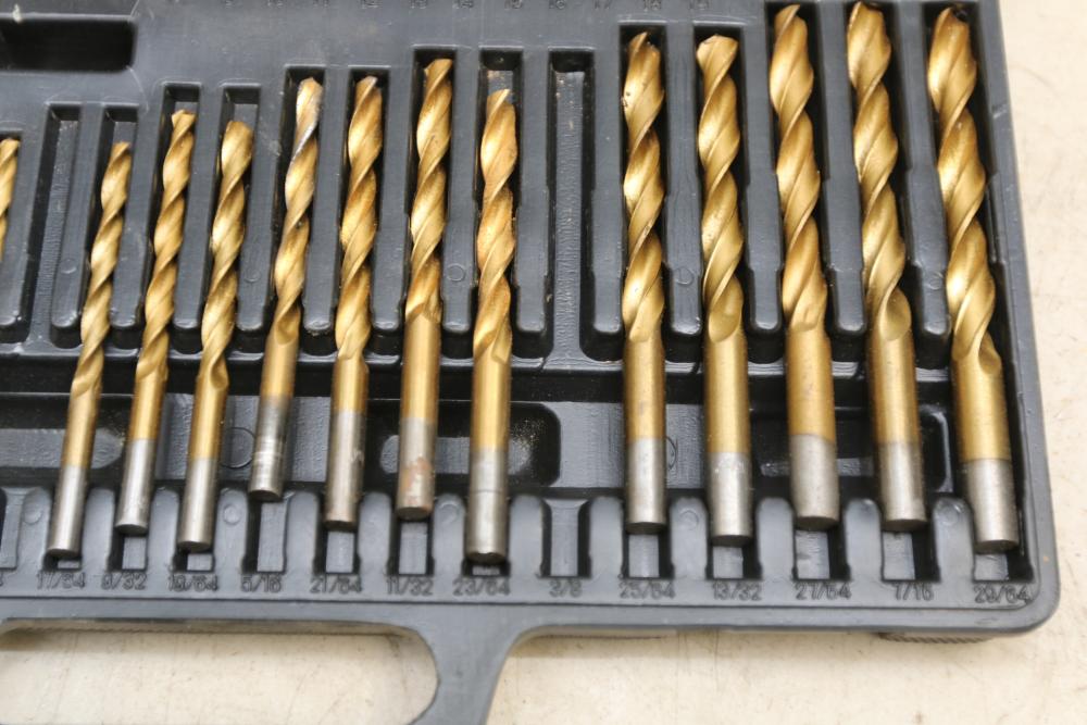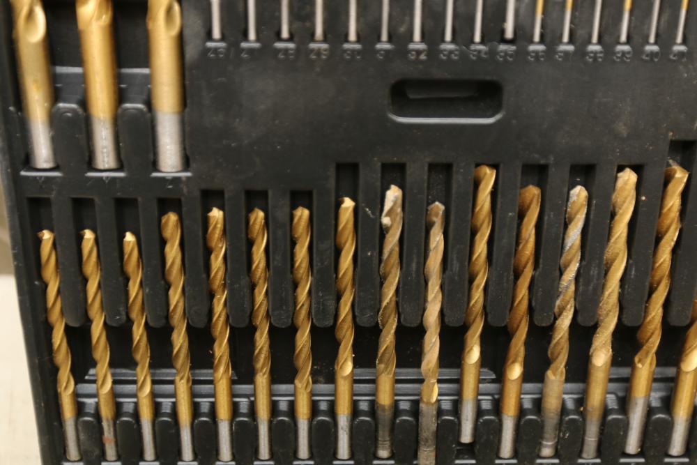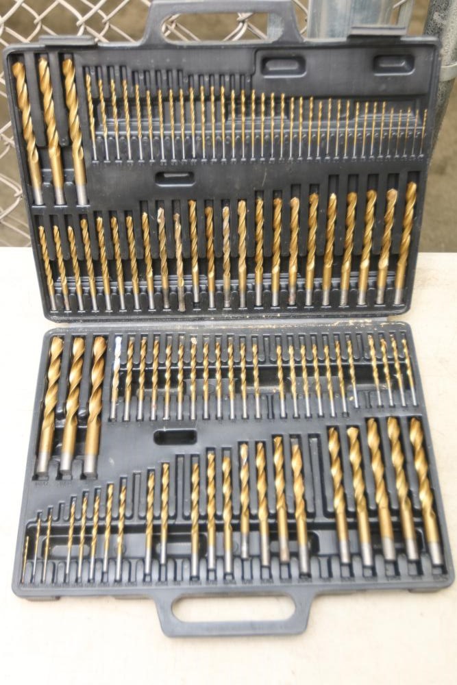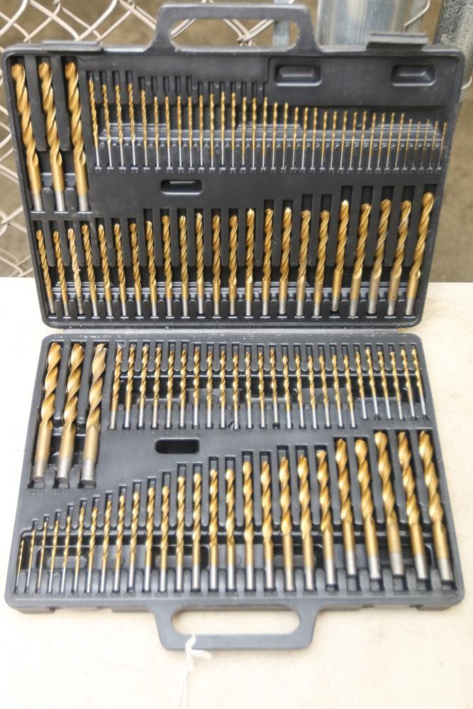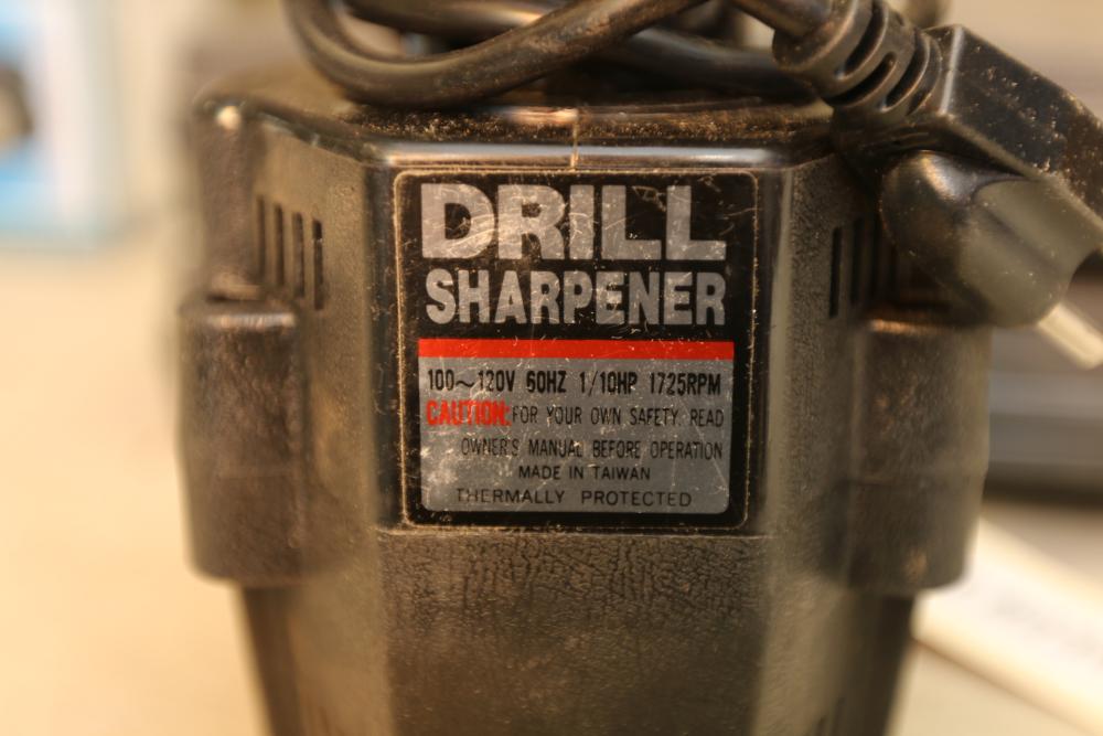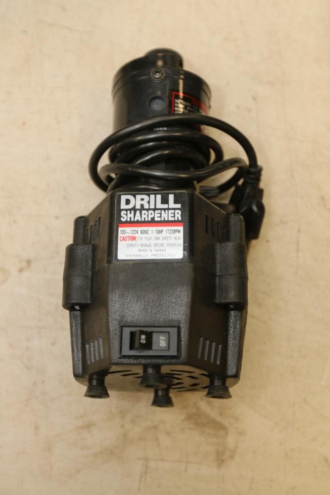 Drill Sharpener model 15206, 100~120V 1/10Hp, also incl drill bits in cases, one appearing to be complete.