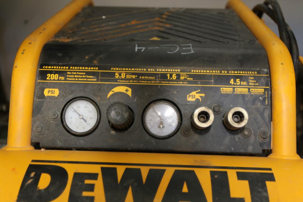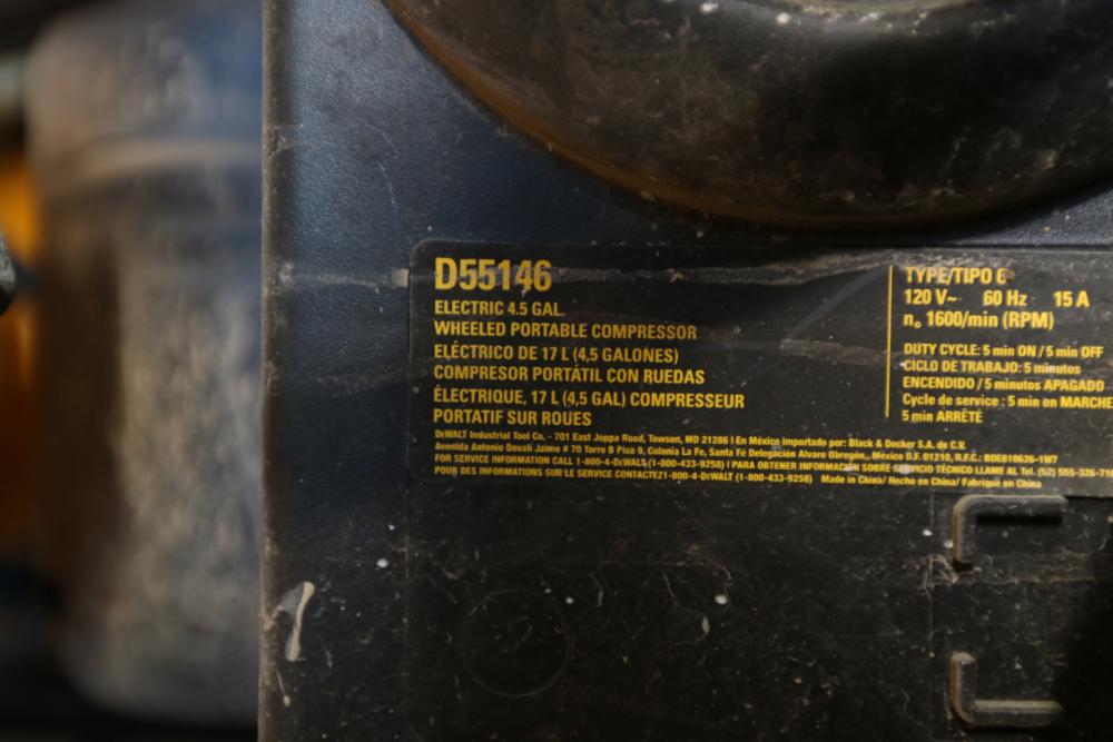 DeWalt 4.5 gallon wheeled portable compressor model D55146, 200psi max, single phase 120V.