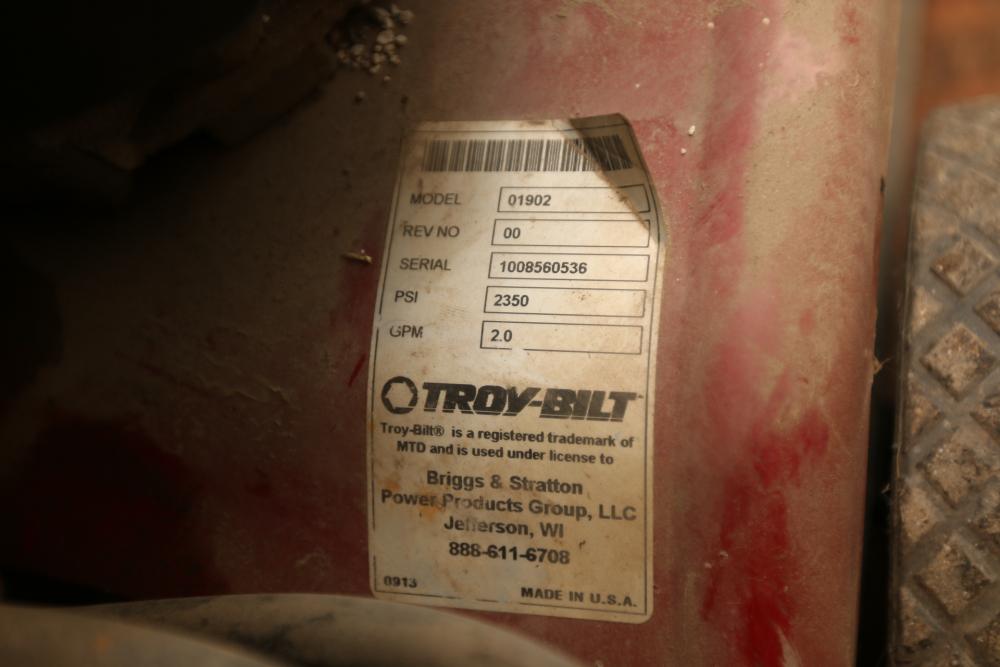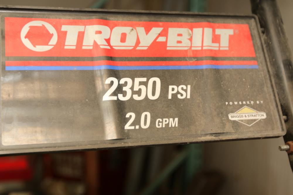 Troy Bilt pressure washer model 01902, 2350psi 20gpm, with a Briggs & Stratton 6.5Hp engine.