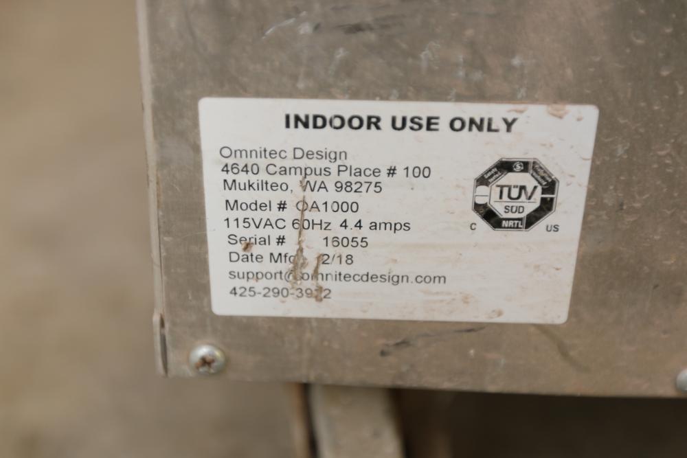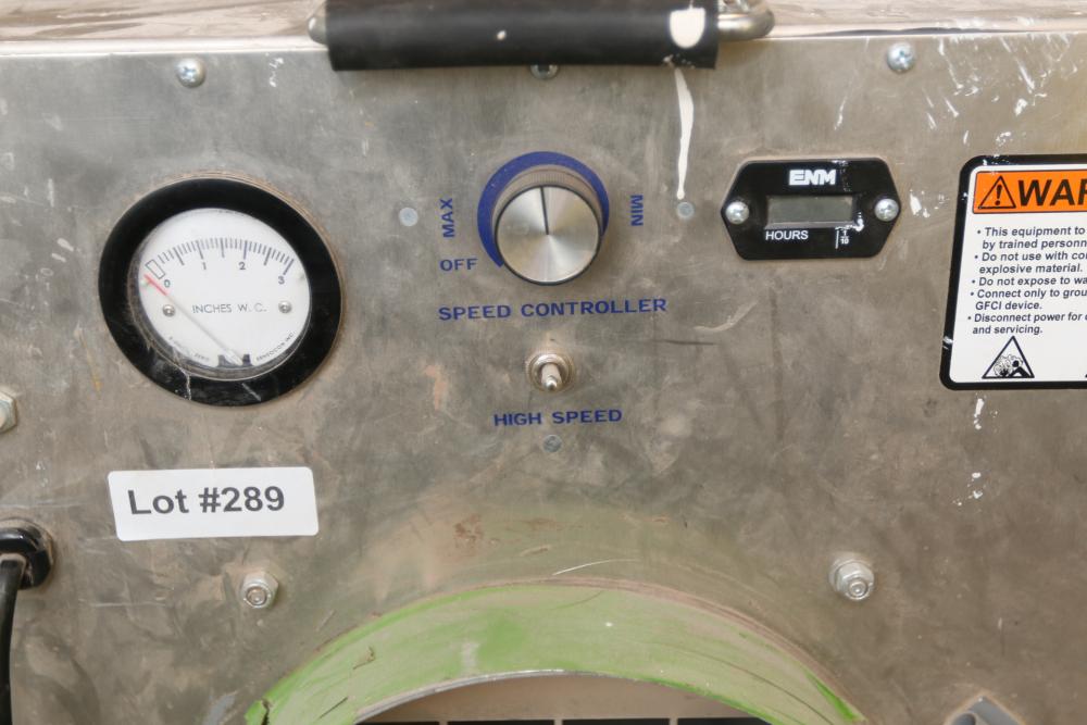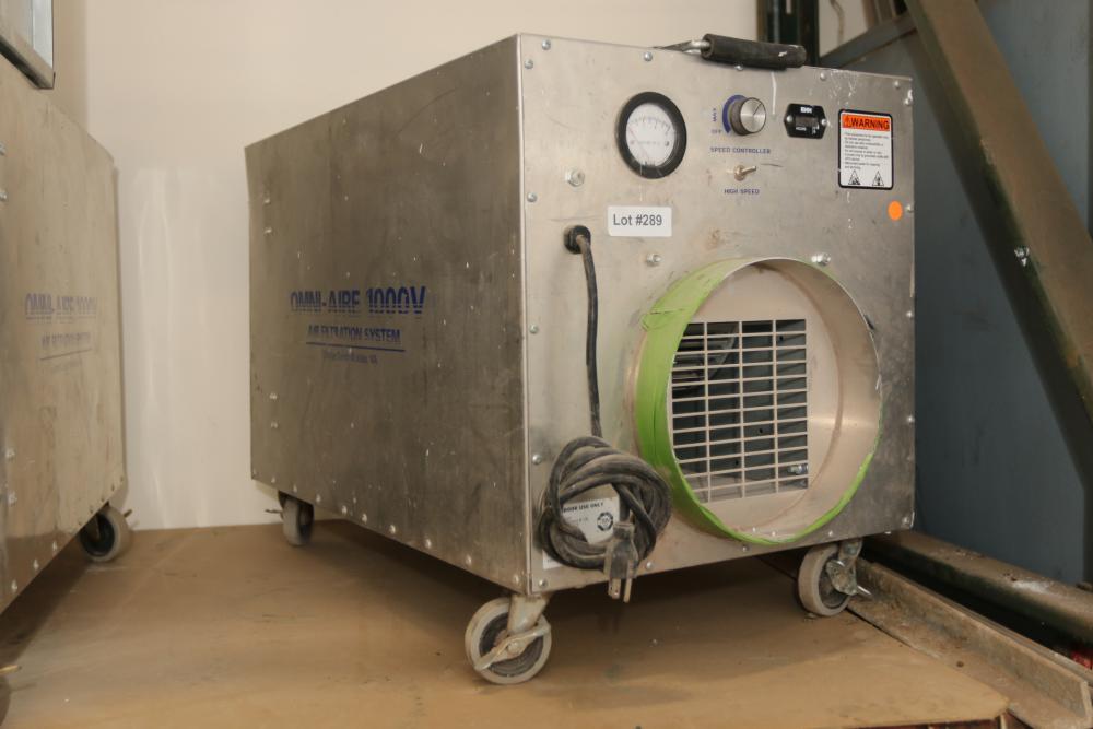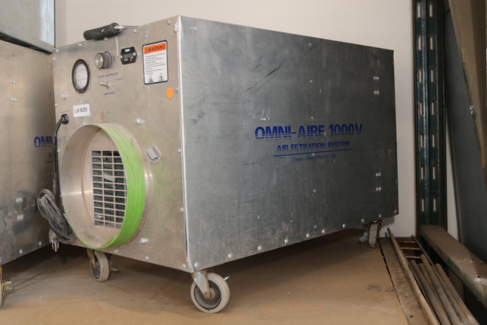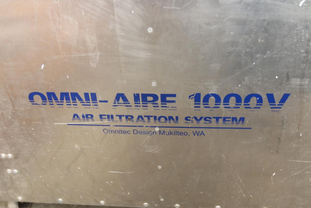 Omni-aire 1000V negative pressure air filtration system model OA1000, 115v. Hour meter illegible at time of photography.