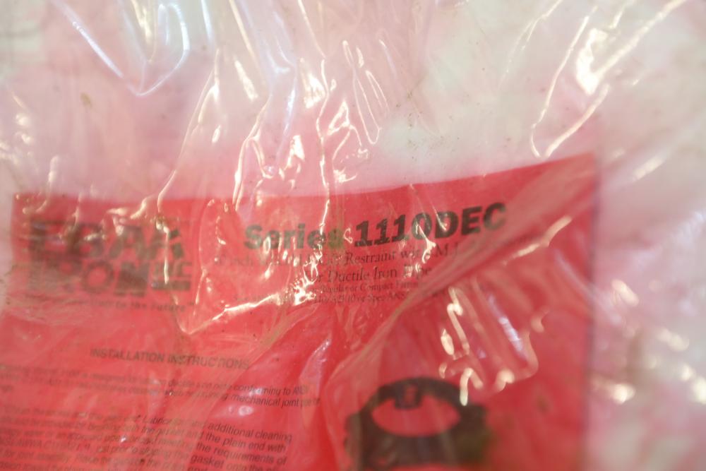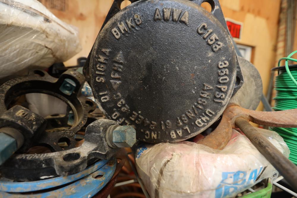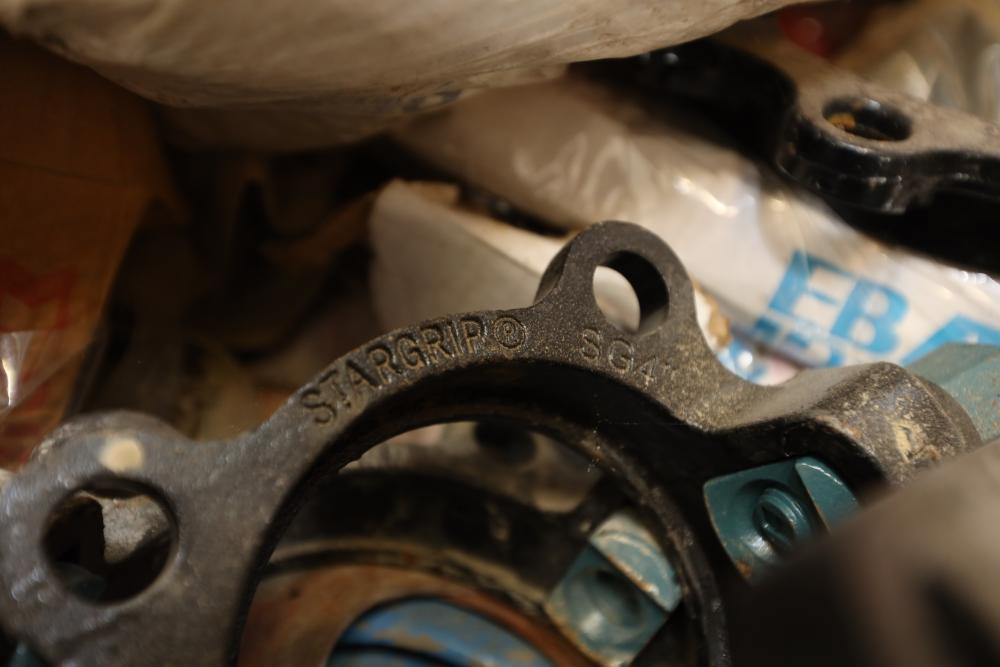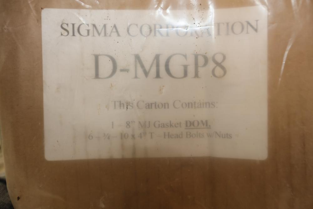 Water main hardware including couplers, flanges, Stargrip SG4, 350PSI cap, Sigma Corporation D-MGP8 8" MJ Gasket DOM, head bolts w/nuts, etc.