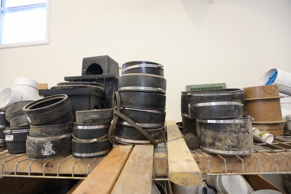 PVC pipe fittings and accessories incl hose clamps, couplers, straight fittings, etc.