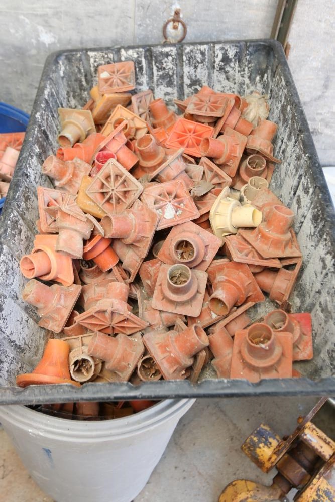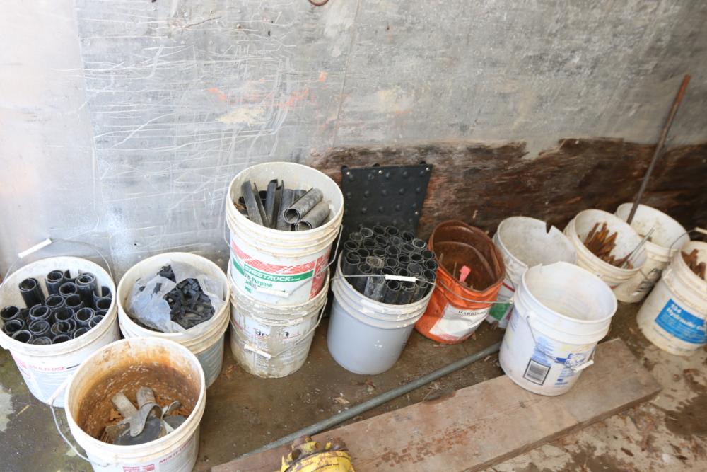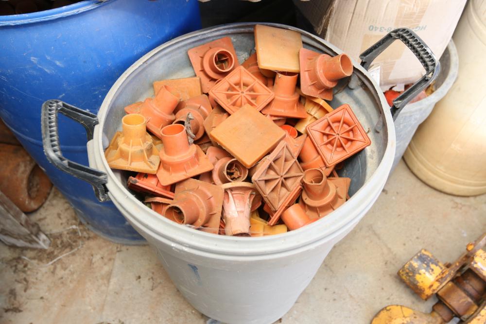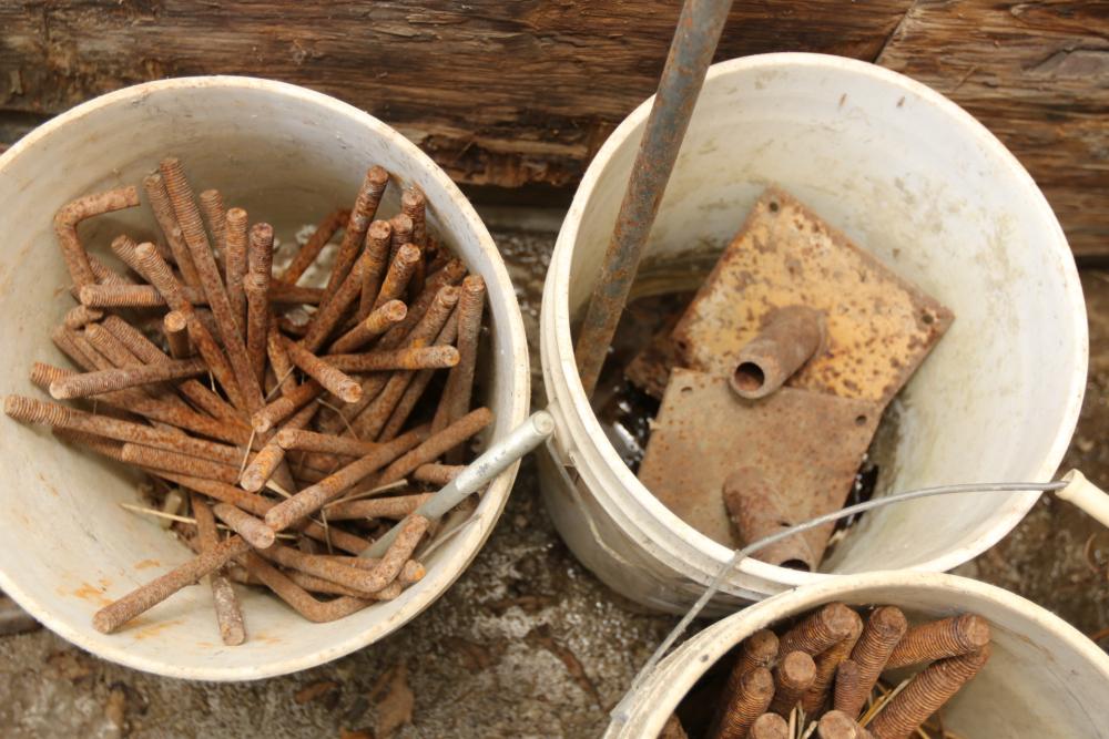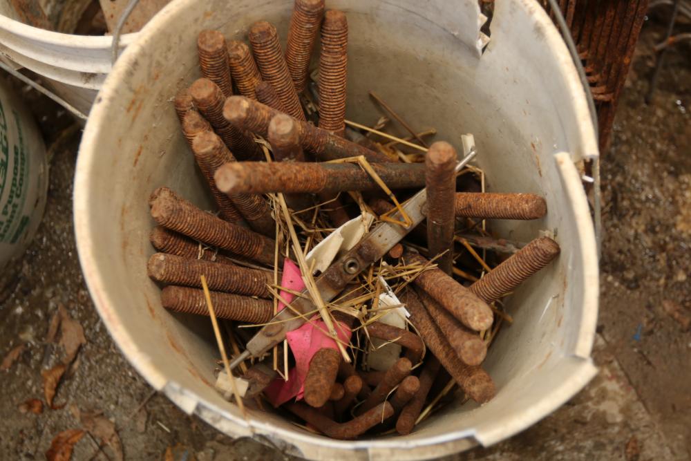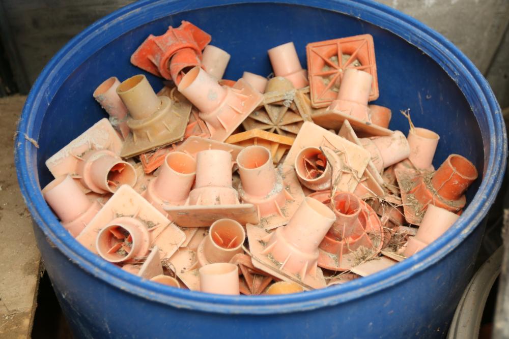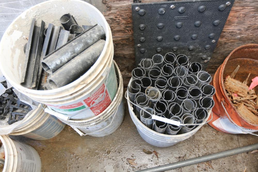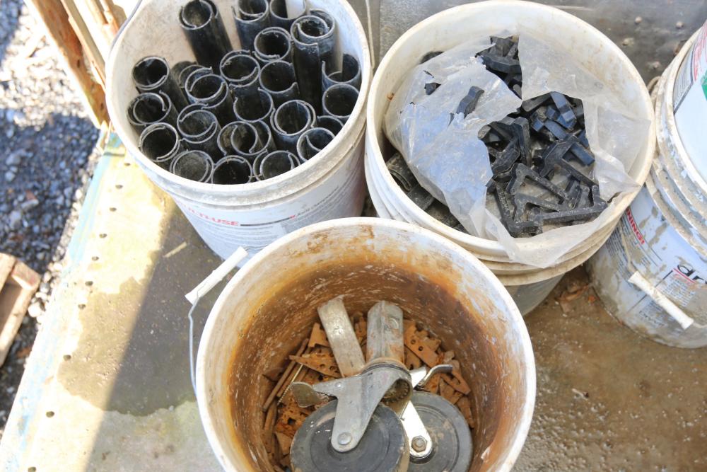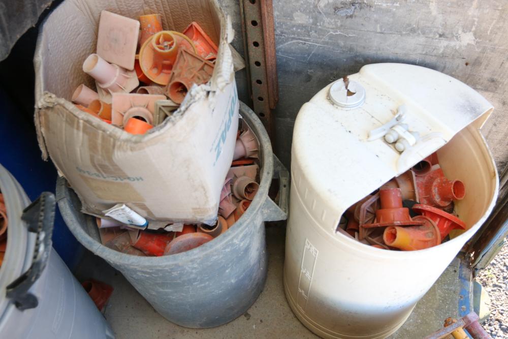 Assortment of rebar installation accessories including protection caps, pins, clips, etc.