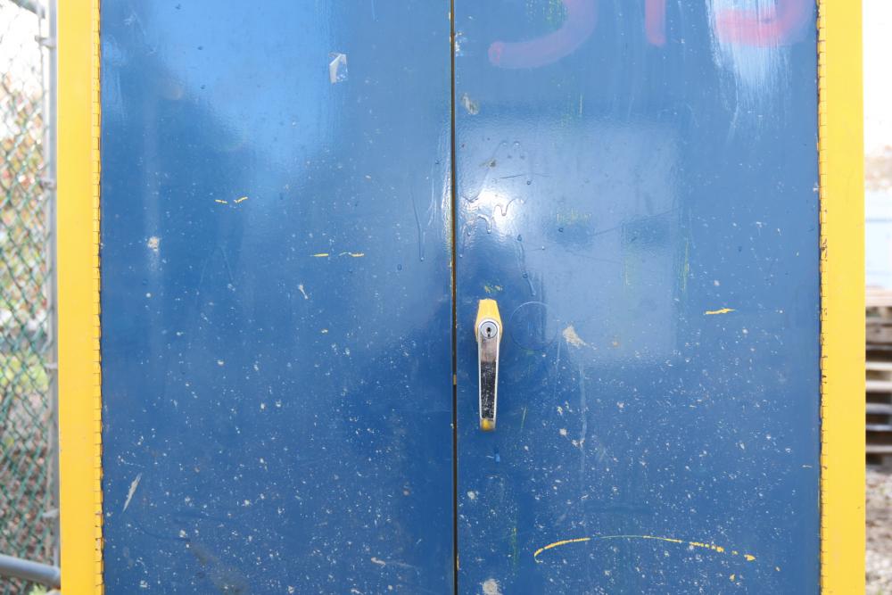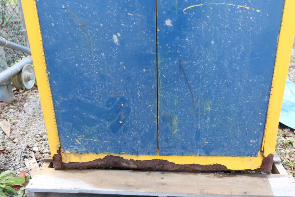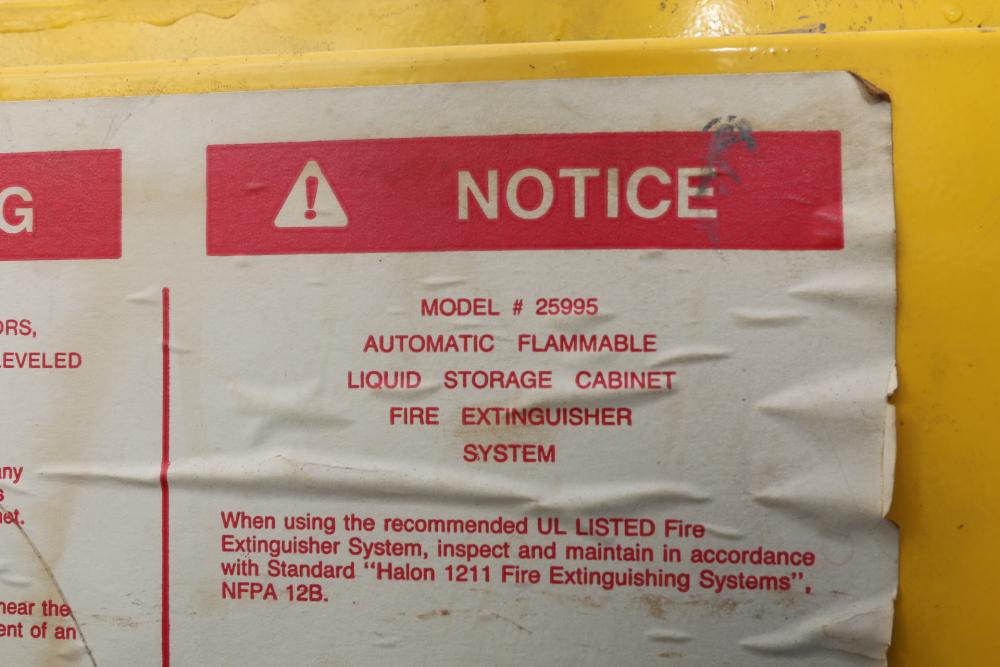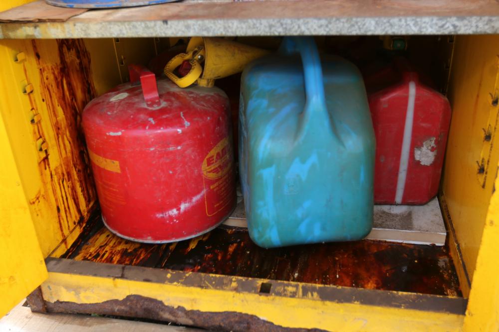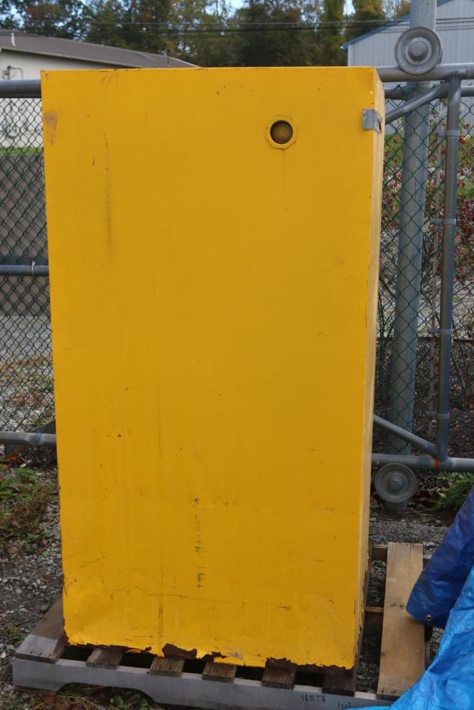 Justrite flammable liquid storage cabinet model RM-8335 60Gal capacity, 34" X 34" X 65"T, also incl gas cans incl metal and plastic.