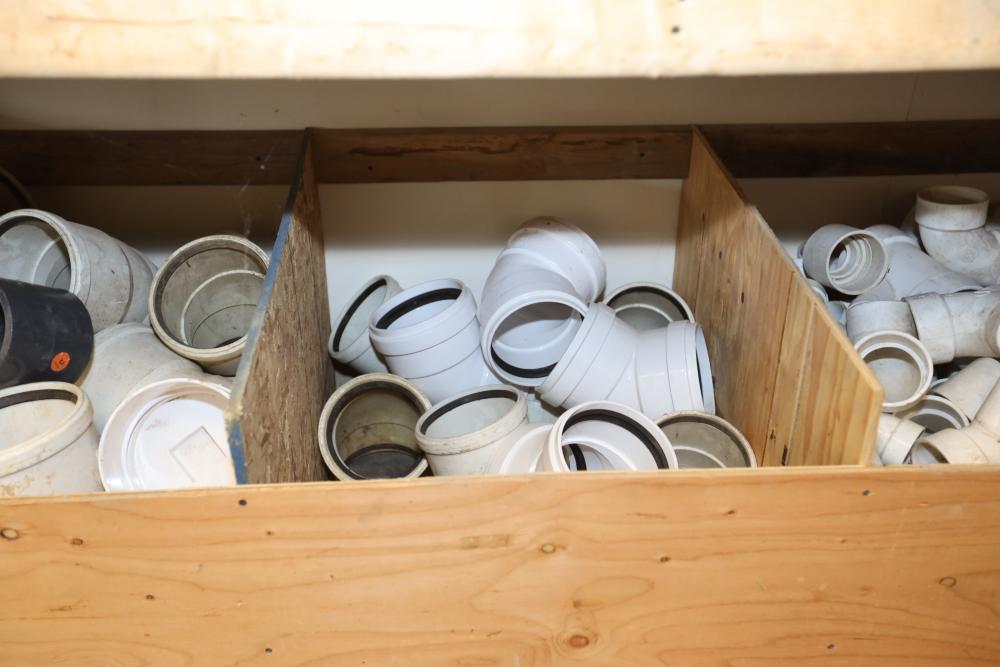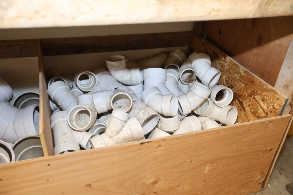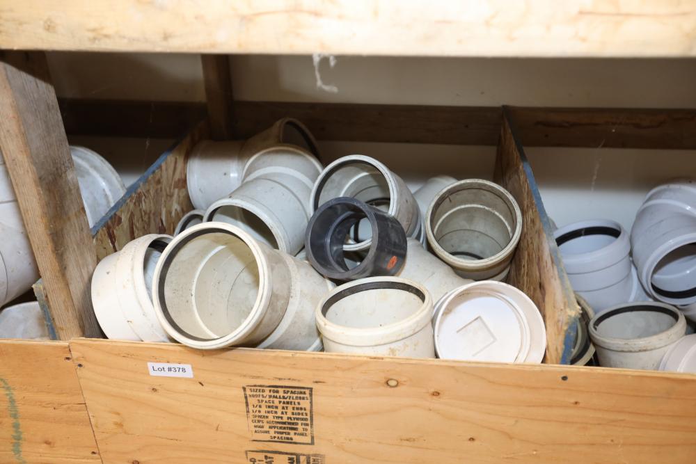 PVC pipe fittings some being 90 degrees, some 45 degrees, some "y's", some openings incl 4", 5", 6.5", 7". Buyer must take all.