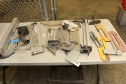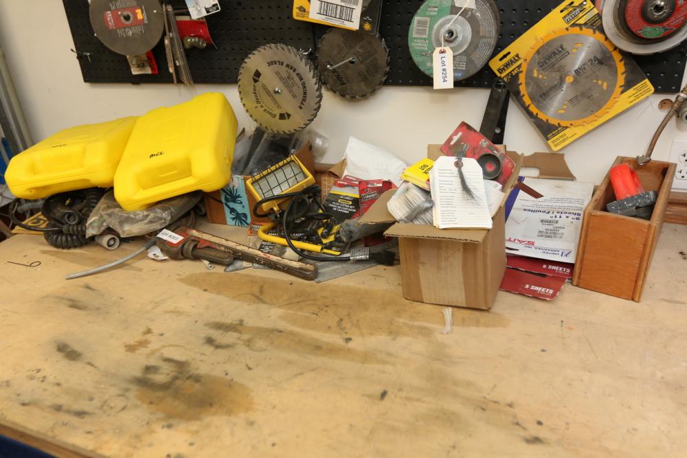 Hand tools incl ratchet straps, wrenches, work lights, bolt cutters, clamps, tri-pods, level, etc.