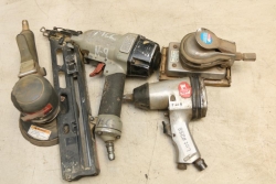 Pneumatic tools incl Campbell Hausfeld 1/2" impact wrench, Campbell Hausfeld jitterbug sander model TL 1005, Ingersoll Rand dual action sander model 311A, Porter Cable 15Ga nailer.