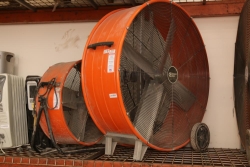 Commercial Electric commercial four blade floor fan, along with smaller Max Air Pro floor fan.