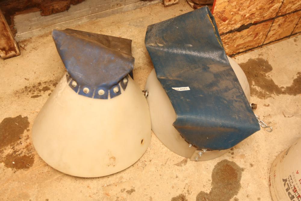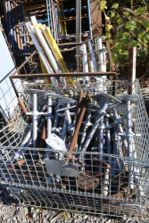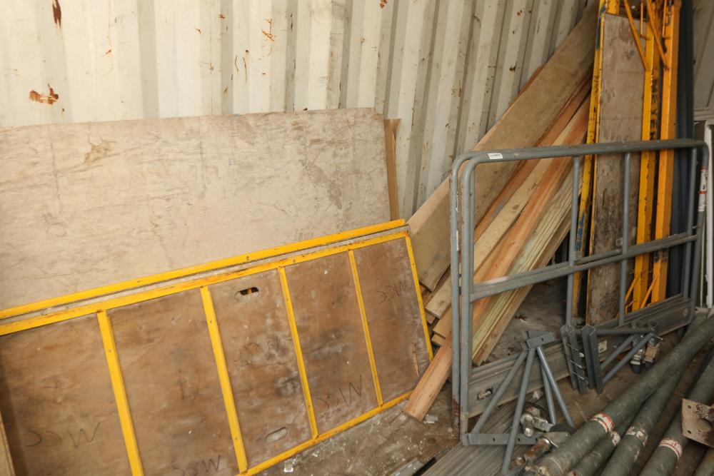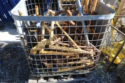 Crate of scaffolding adjustable feet and crate of scaffolding attachments.