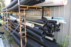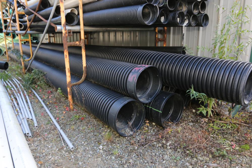 Various length and dia drainage pipes smallest being 12" opening, largest being 241"L with a 17.5" opening.