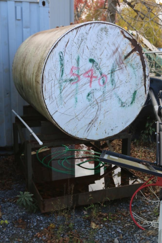 Water storage tank on platform.