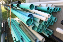 Various length and dia pvc pipe, smallest being 5"dia, largest dia being 9", largest pipe measuring approx. 172.5"L.