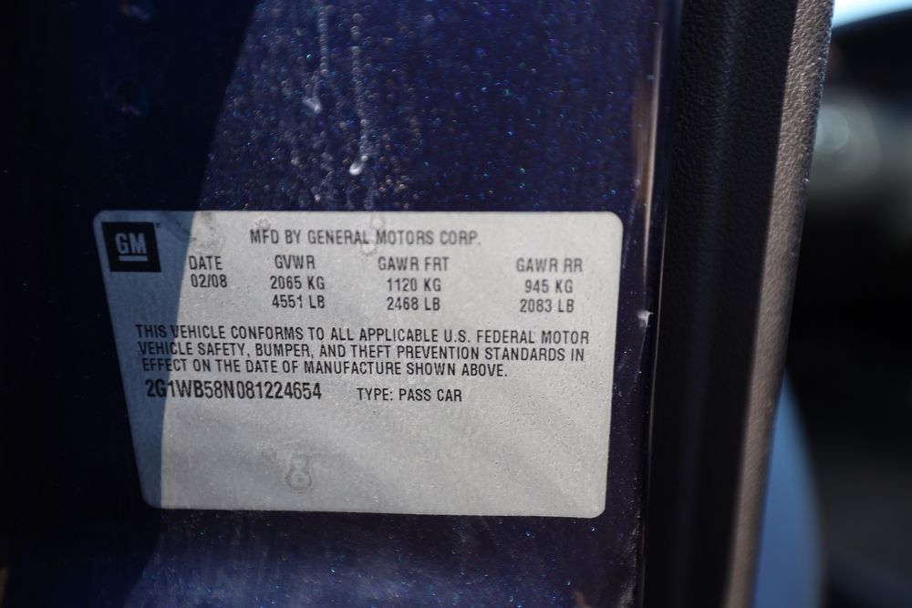 2008 Chevrolet Impala. VIN: 2G1WB58N081224654. Mileage: 125,168. Fuel leak, lines are rotted, Starts, Rust. Asset#: 17P20.
