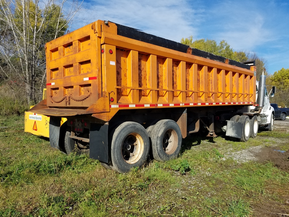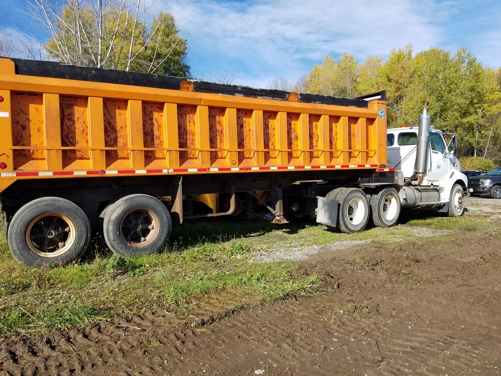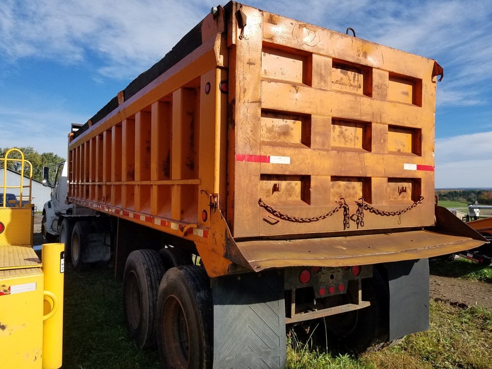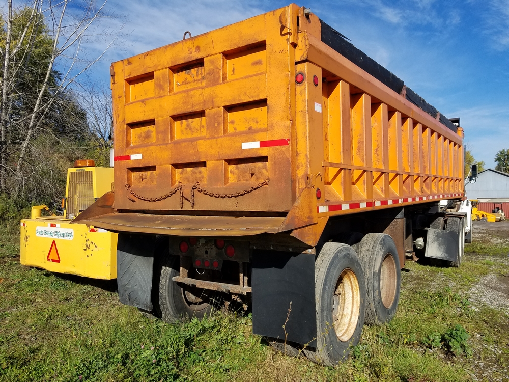 Items include 1998 Ford LT9513 Louisville 113 Tractor, 1988 Blaw Knox RW100 Shoulder Machine, 1988 R/S Dump Trailer, Smith Drum Lathe, Agway Air Compressor, and more. Items located in Lowville, NY.