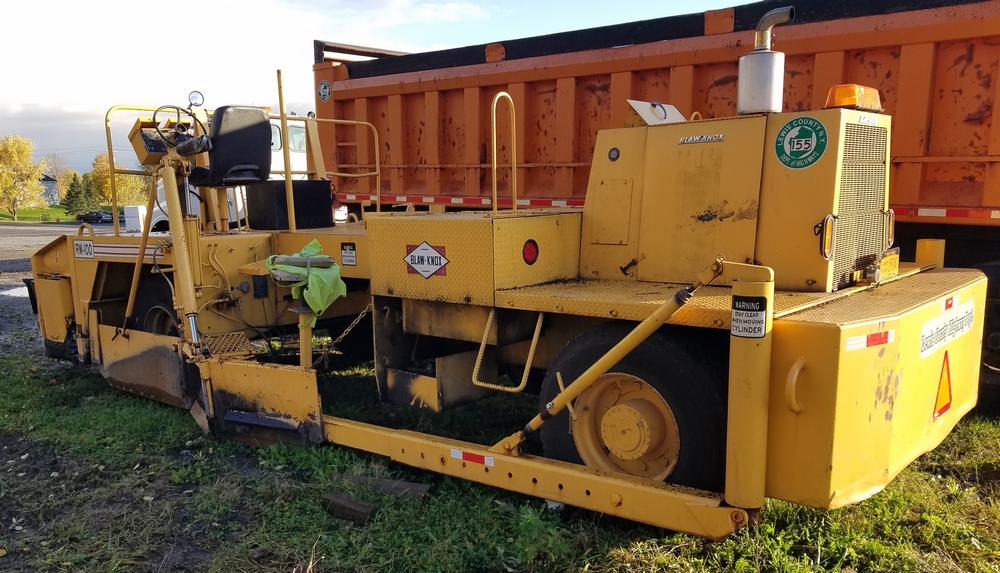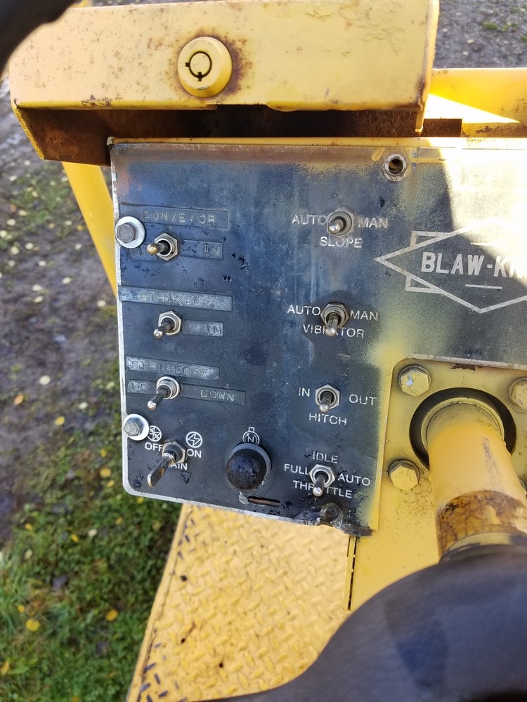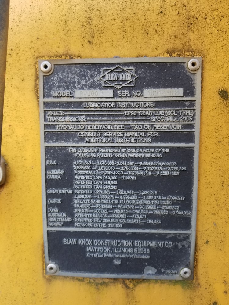 1988 Blaw Knox RW100 Shoulder Machine; Runs and Operates, New clutch and flywheel, New Tires, Spare Belt & Bearing Assembly included. There are two hour meters on the unit. One indicates 1290 Hours. The other indicates 3916 Hours.
