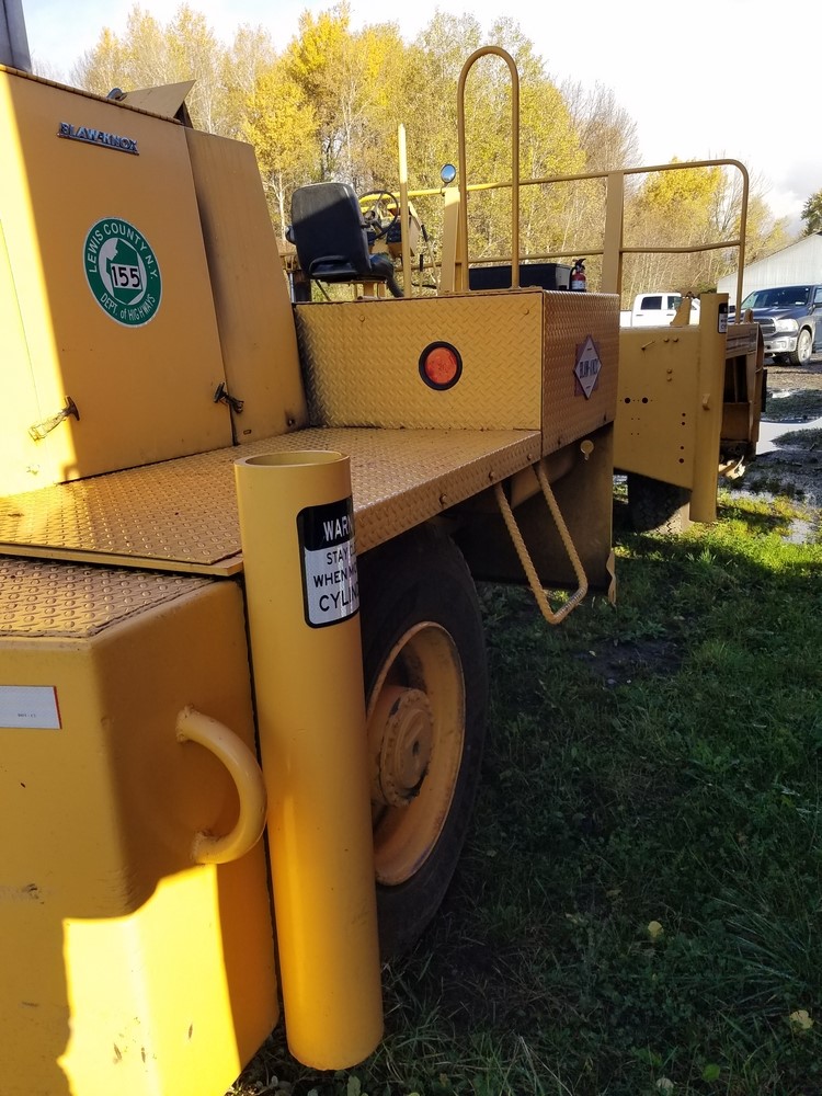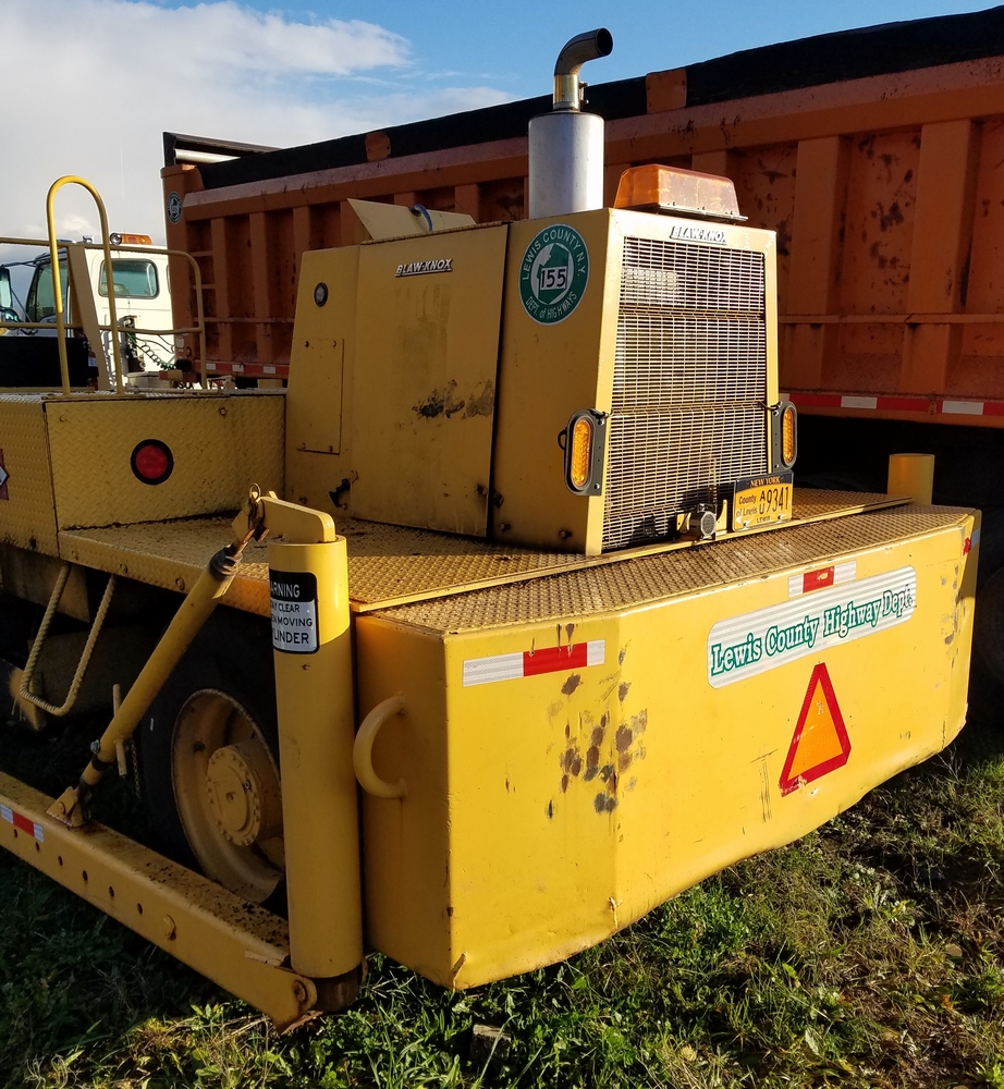 Items include 1998 Ford LT9513 Louisville 113 Tractor, 1988 Blaw Knox RW100 Shoulder Machine, 1988 R/S Dump Trailer, Smith Drum Lathe, Agway Air Compressor, and more. Items located in Lowville, NY.