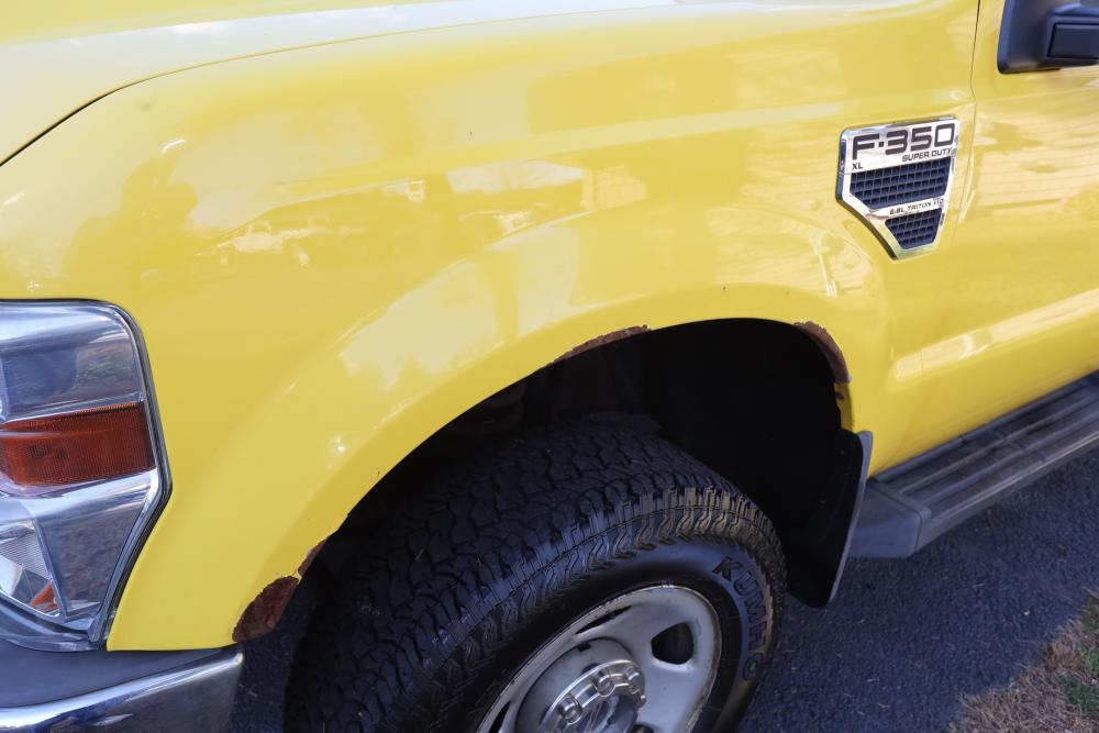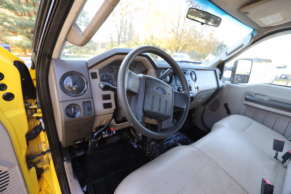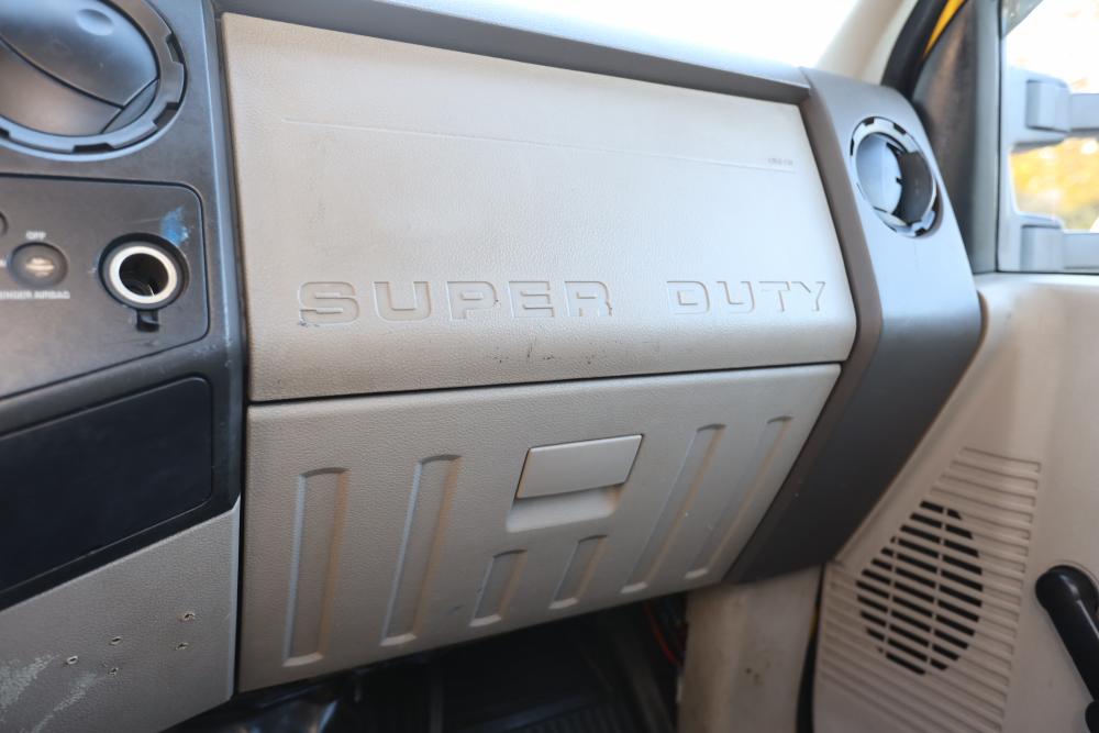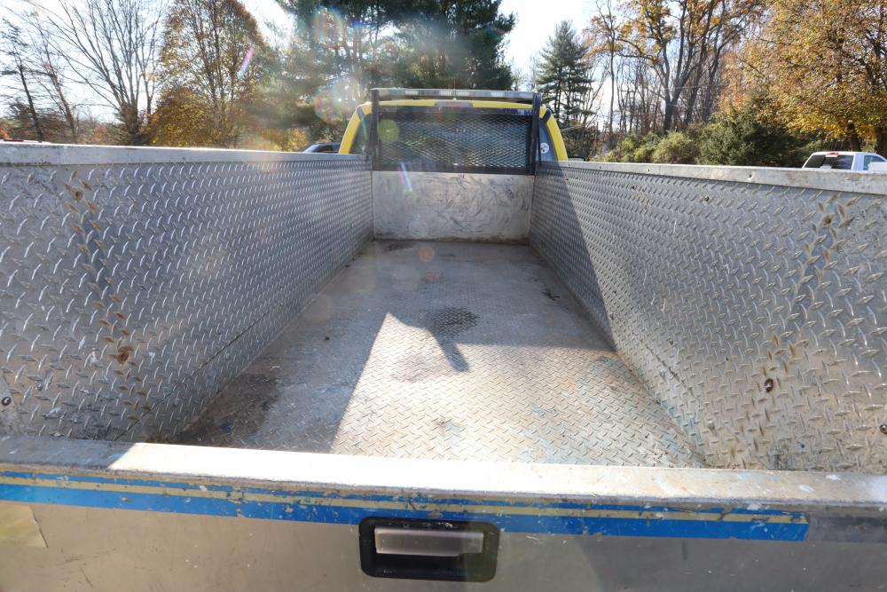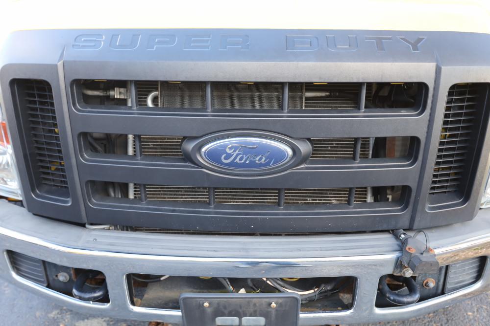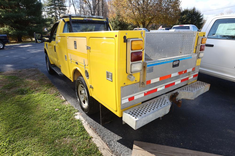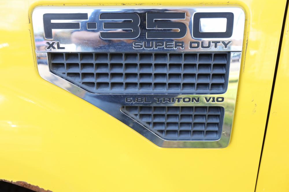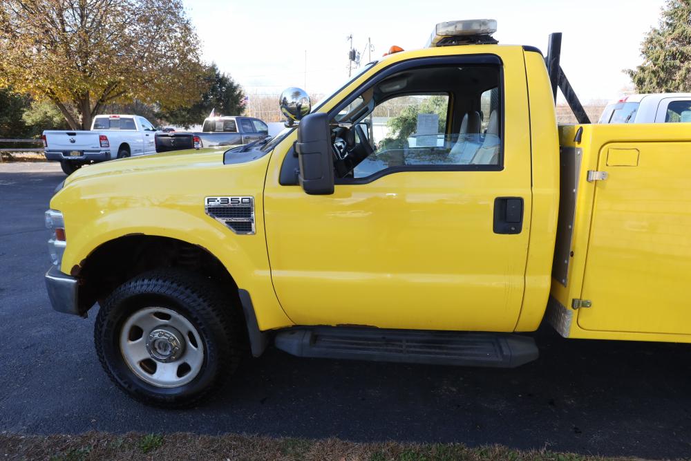 2008 Ford F-350 XL Super Duty 4x4 regular cab pickup truck with 6.8L Triton V10 cylinder gas engine, automatic transmission. VIN number: 1FDSF35Y68EC18851. Leather interior, manual windows, heat, A/C, AM/FM radio, plow frame and controller, brake force brake controller, fiberglass Brandfx service body with compartments, two Craftsman tool boxes model CMST98088R.0, bed lined with diamond plate, headache rack, mounted light bar, spot light. Odometer reading 137242. Spot light and passenger side lower mirror glass broken. Title and key available. Transfer will be handled through an MV-50.