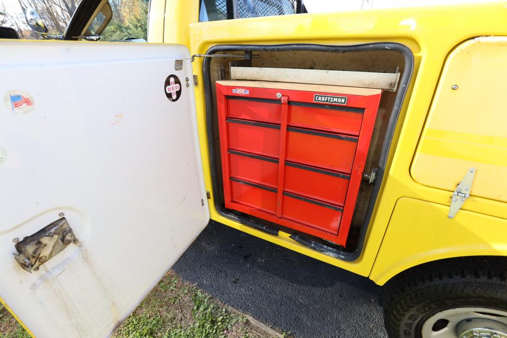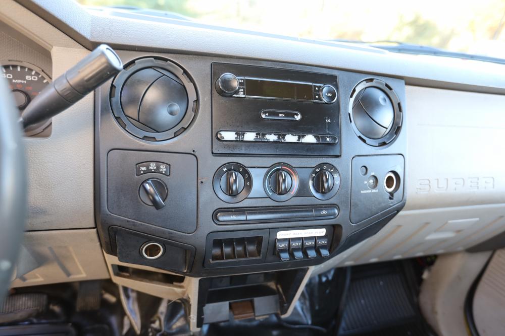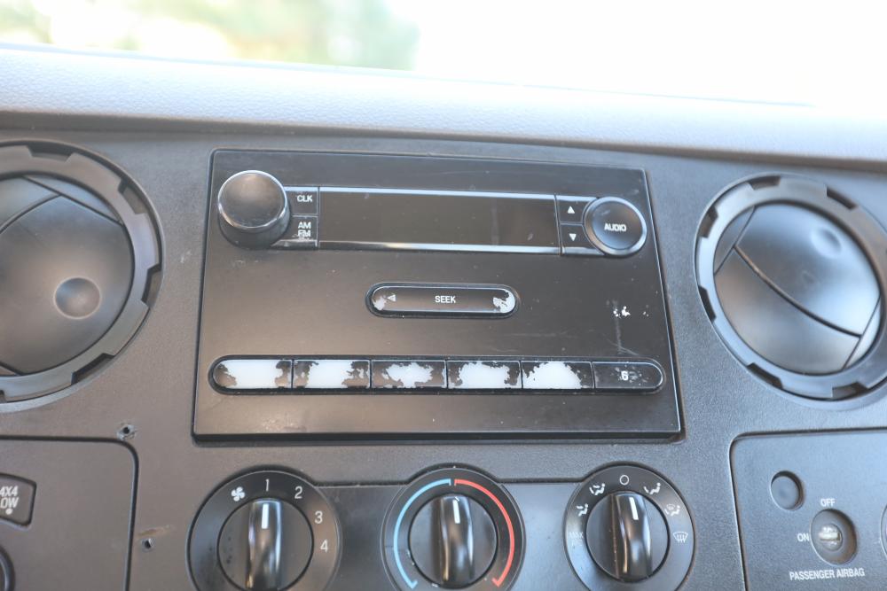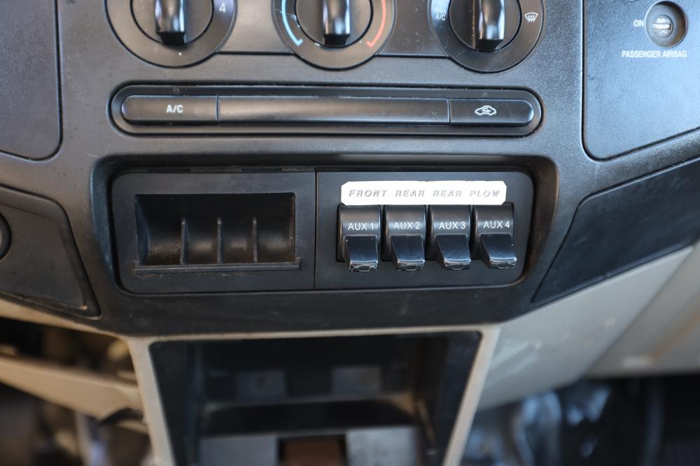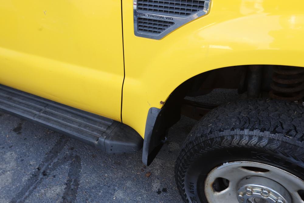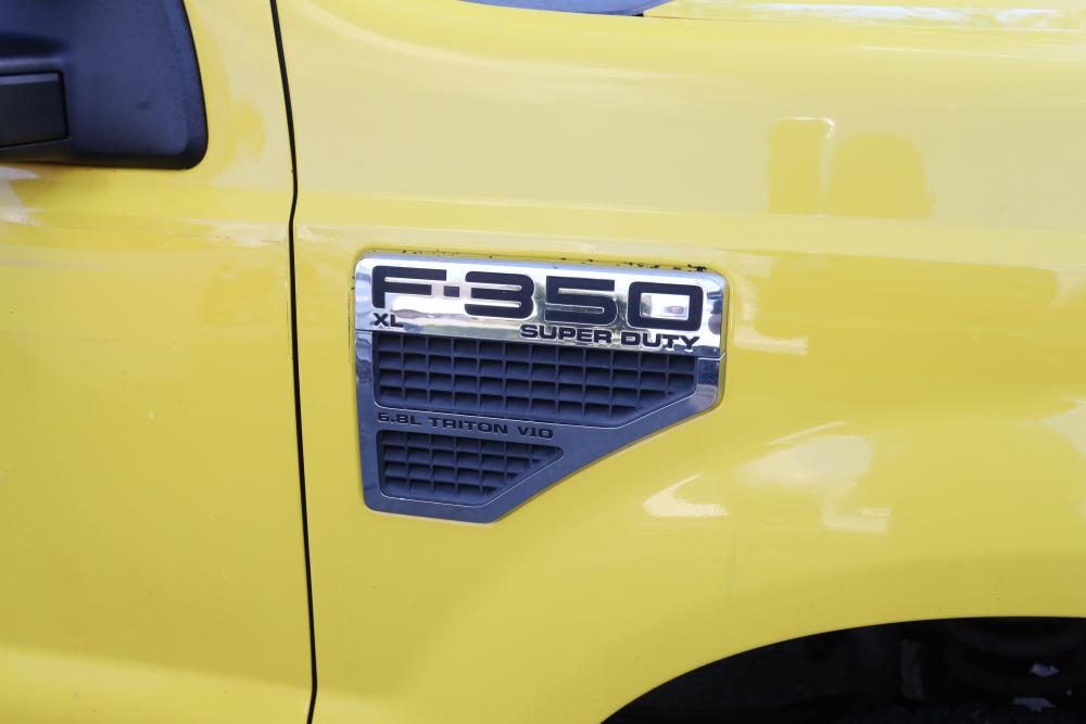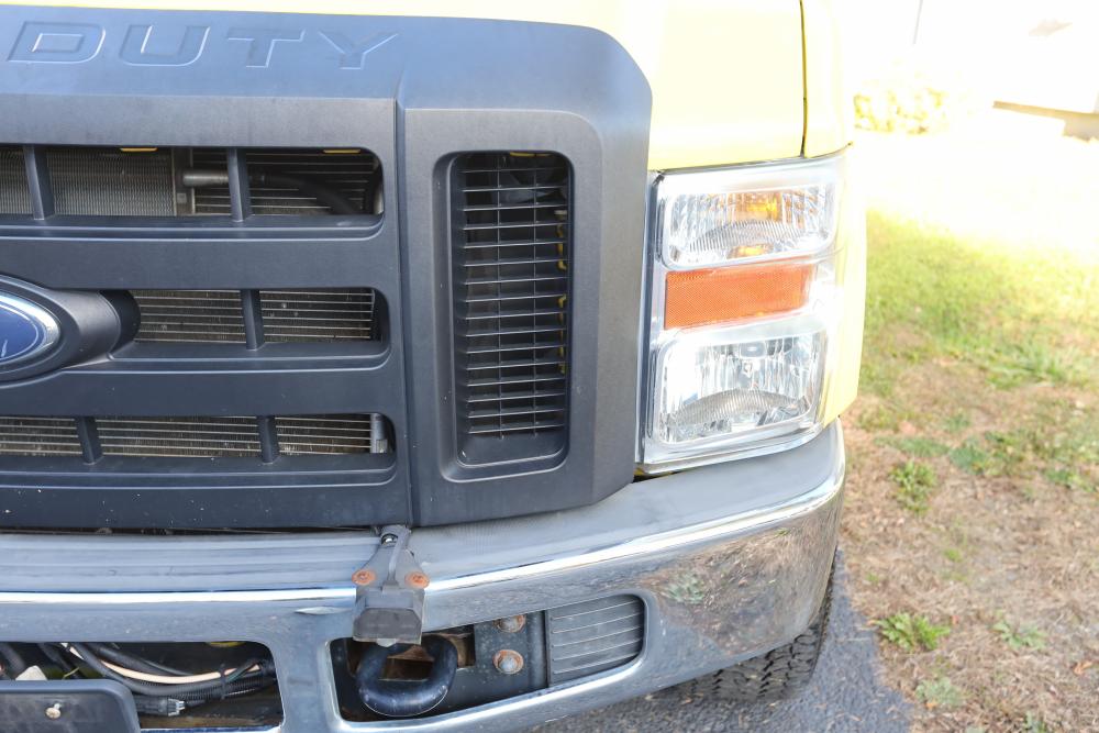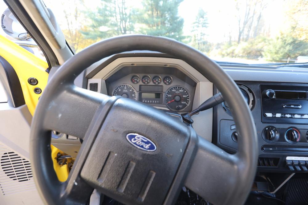 2008 Ford F-350 XL Super Duty 4x4 regular cab pickup truck with 6.8L Triton V10 cylinder gas engine, automatic transmission. VIN number: 1FDSF35Y68EC18851. Leather interior, manual windows, heat, A/C, AM/FM radio, plow frame and controller, brake force brake controller, fiberglass Brandfx service body with compartments, two Craftsman tool boxes model CMST98088R.0, bed lined with diamond plate, headache rack, mounted light bar, spot light. Odometer reading 137242. Spot light and passenger side lower mirror glass broken. Title and key available. Transfer will be handled through an MV-50.