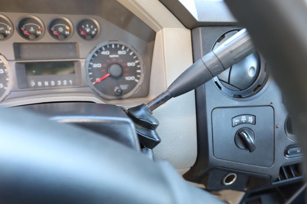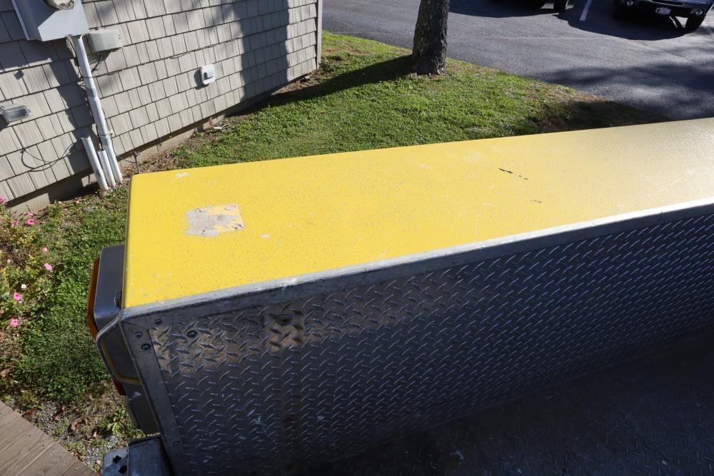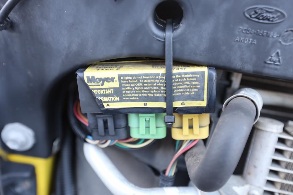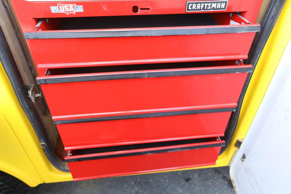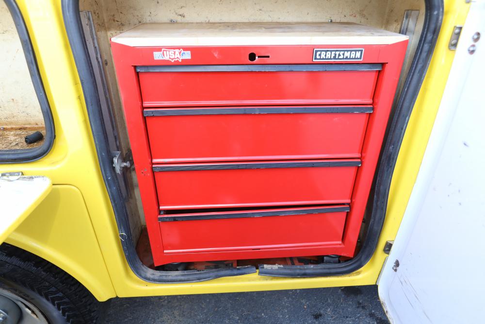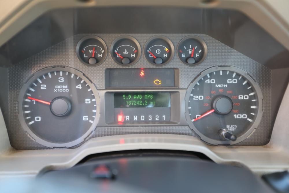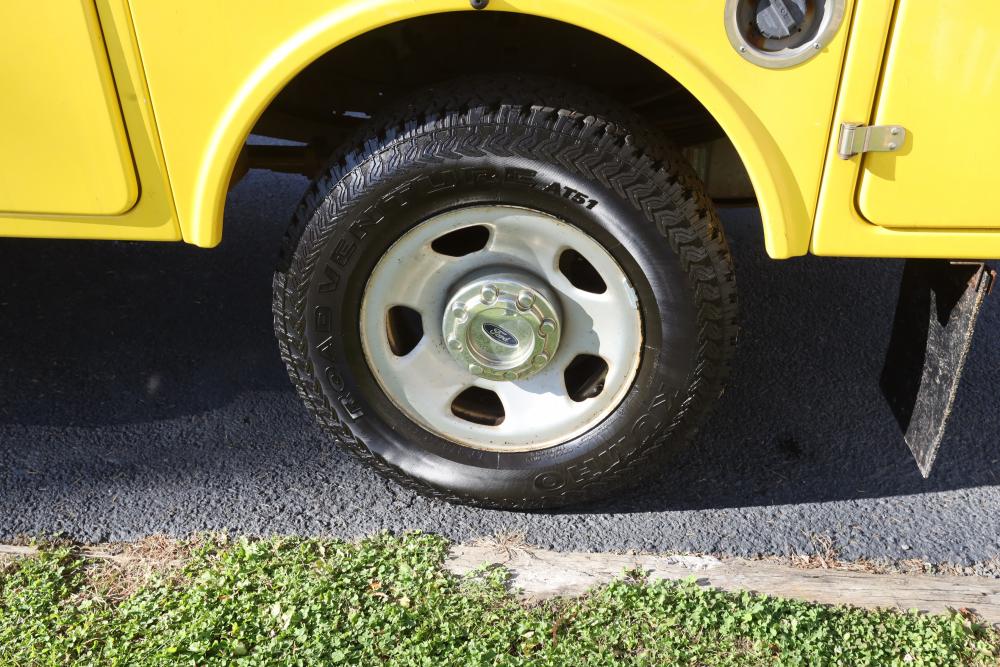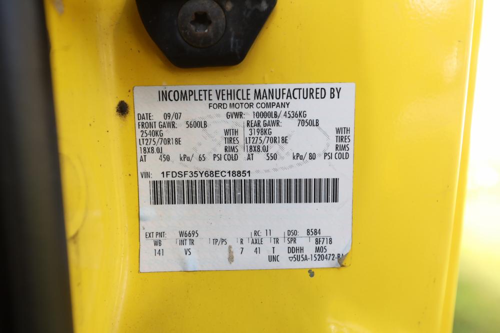 2008 Ford F-350 XL Super Duty 4x4 regular cab pickup truck with 6.8L Triton V10 cylinder gas engine, automatic transmission. VIN number: 1FDSF35Y68EC18851. Leather interior, manual windows, heat, A/C, AM/FM radio, plow frame and controller, brake force brake controller, fiberglass Brandfx service body with compartments, two Craftsman tool boxes model CMST98088R.0, bed lined with diamond plate, headache rack, mounted light bar, spot light. Odometer reading 137242. Spot light and passenger side lower mirror glass broken. Title and key available. Transfer will be handled through an MV-50.