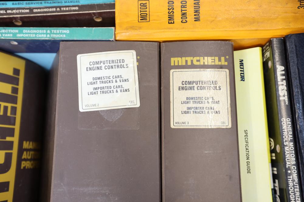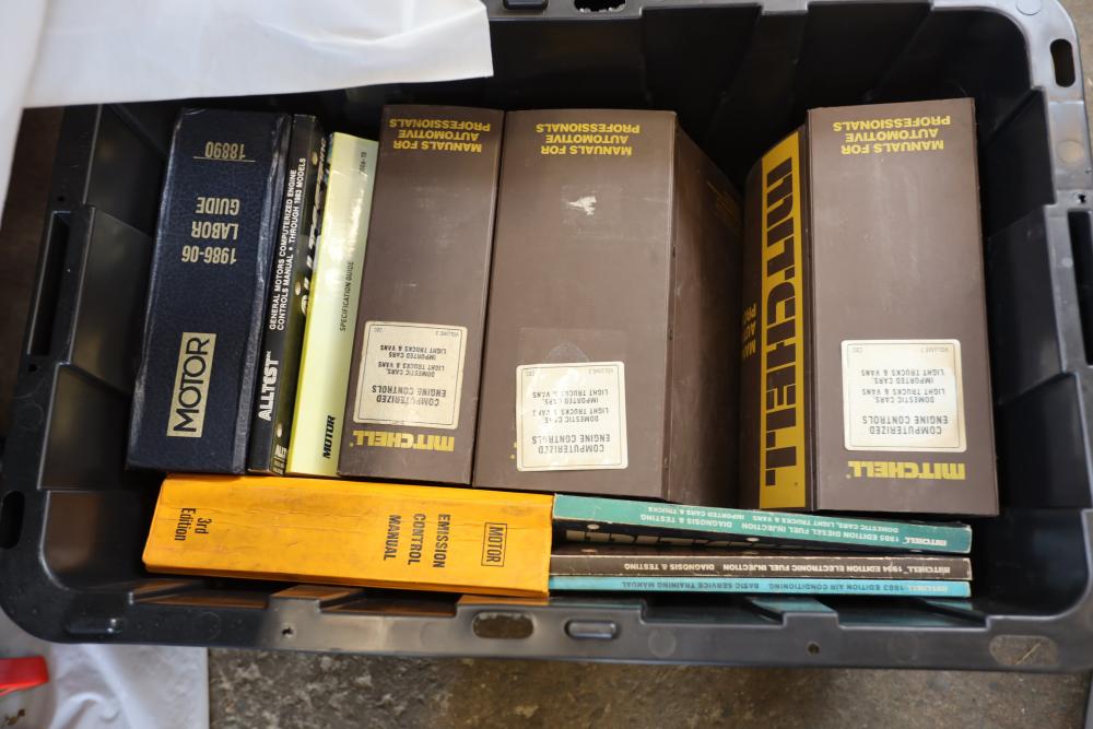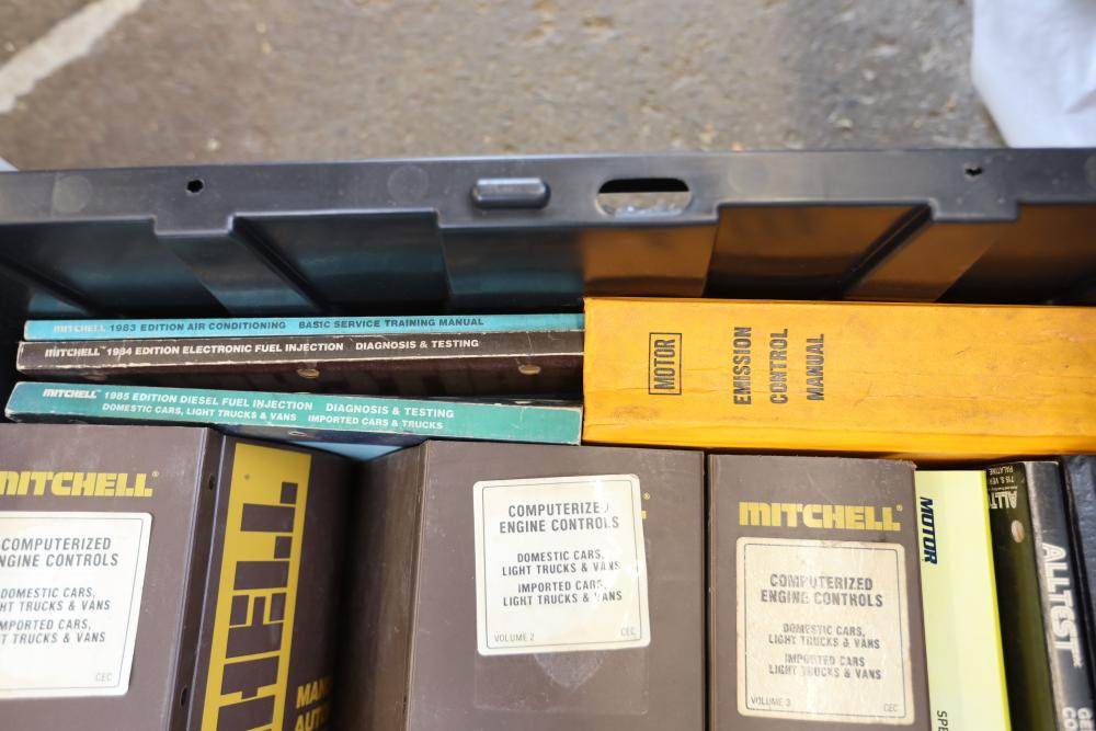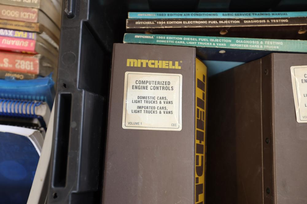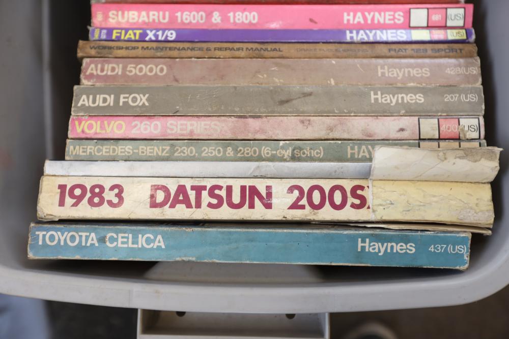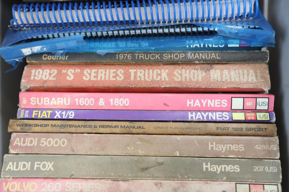 Automotive manuals including Advance Auto Parts Denso intermittent electrical and drivability diagnostics training manual, California OBDII training guide, Haynes 1982 A series truck shop, Subaru 1600 & 1800, Fiat X1/9, Audi 5000, Audi Fox, Volvo 260 series, 1983 Datsun 200SX, etc.